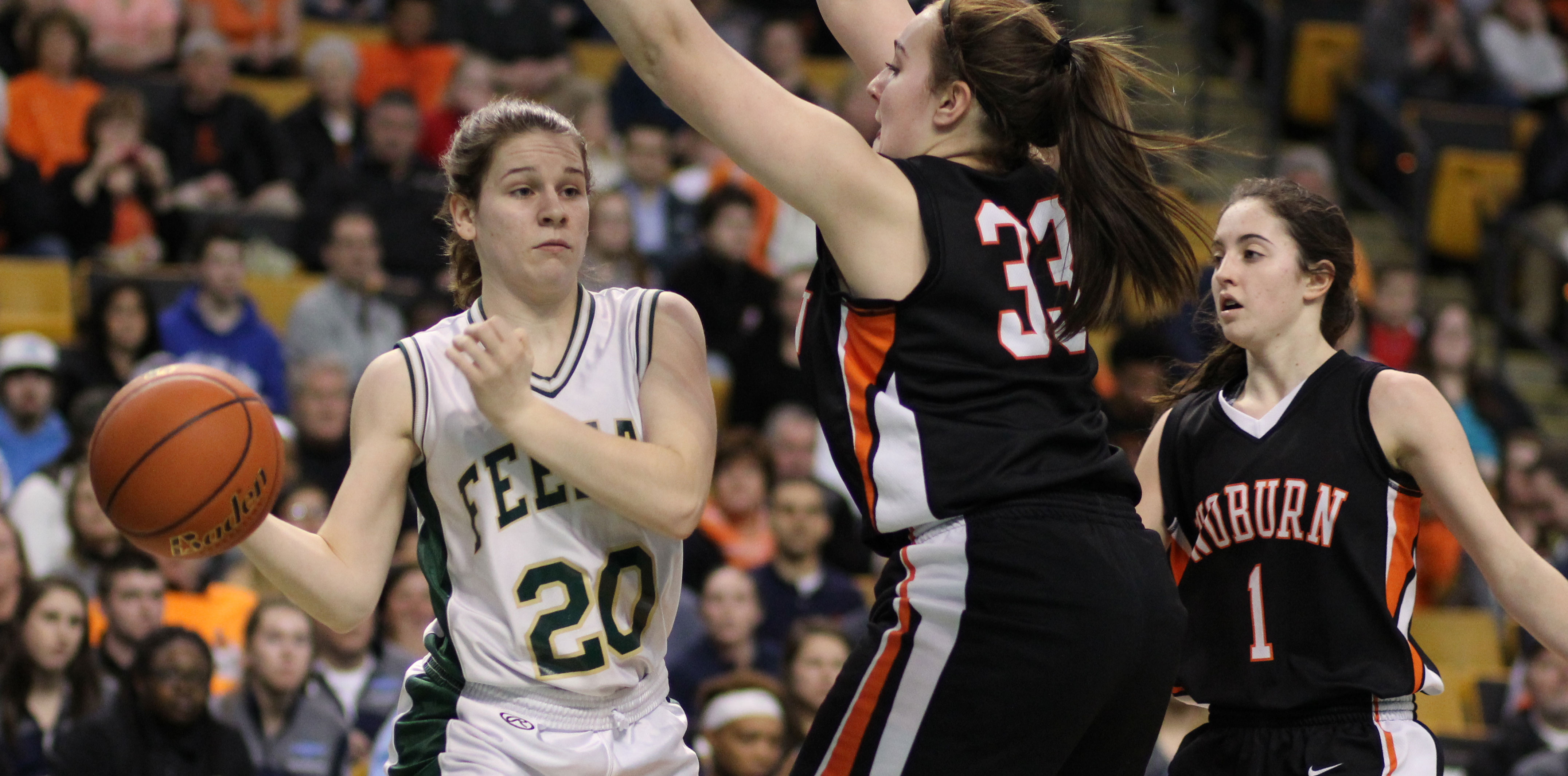 Katie Nelson (31) and Lauren Manis (21) carry Bishop Feehan to D1 title game with 70-57 win over Woburn