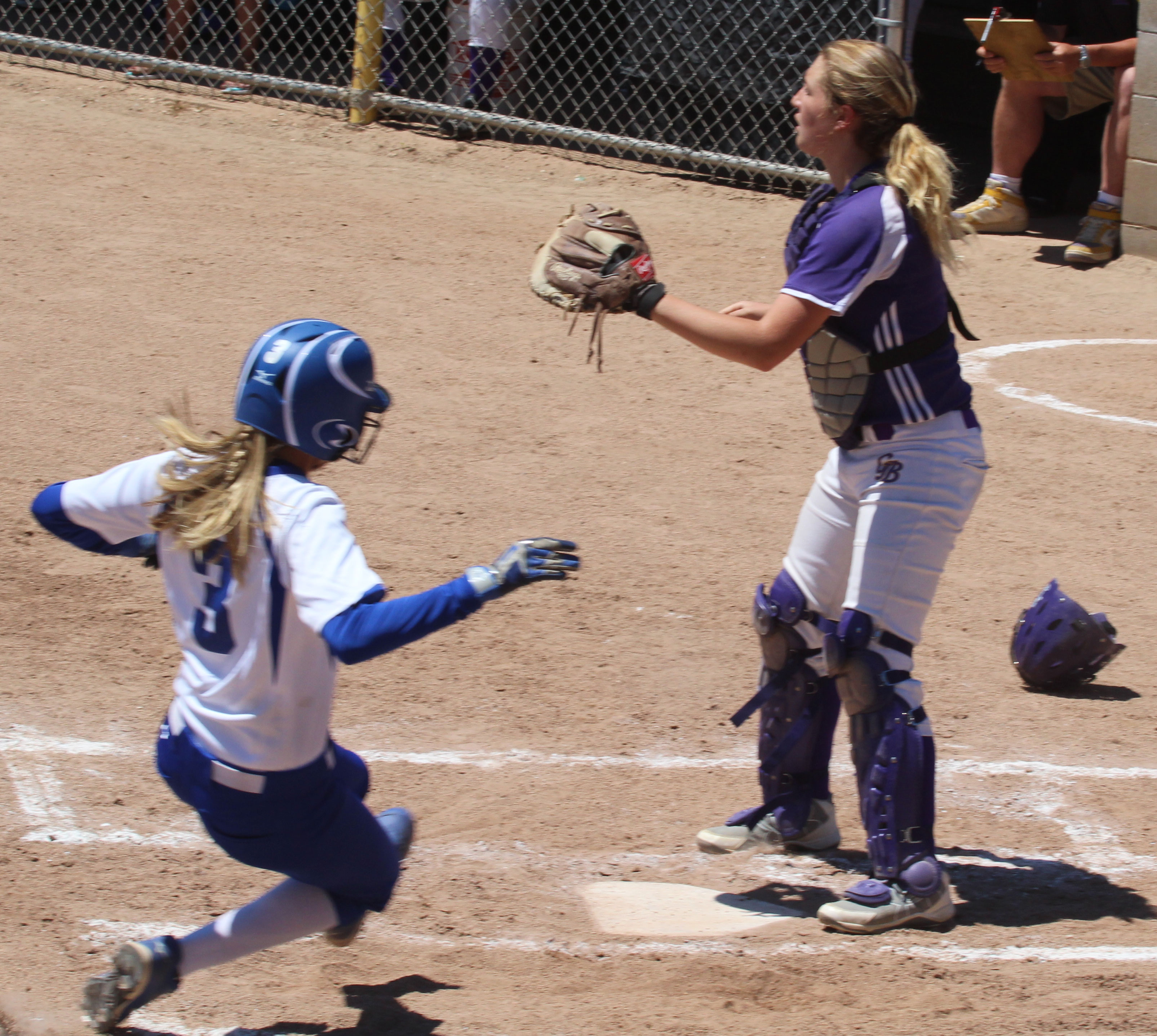 Eliza Hosford crosses home with Bucksport's run in the 4th inning