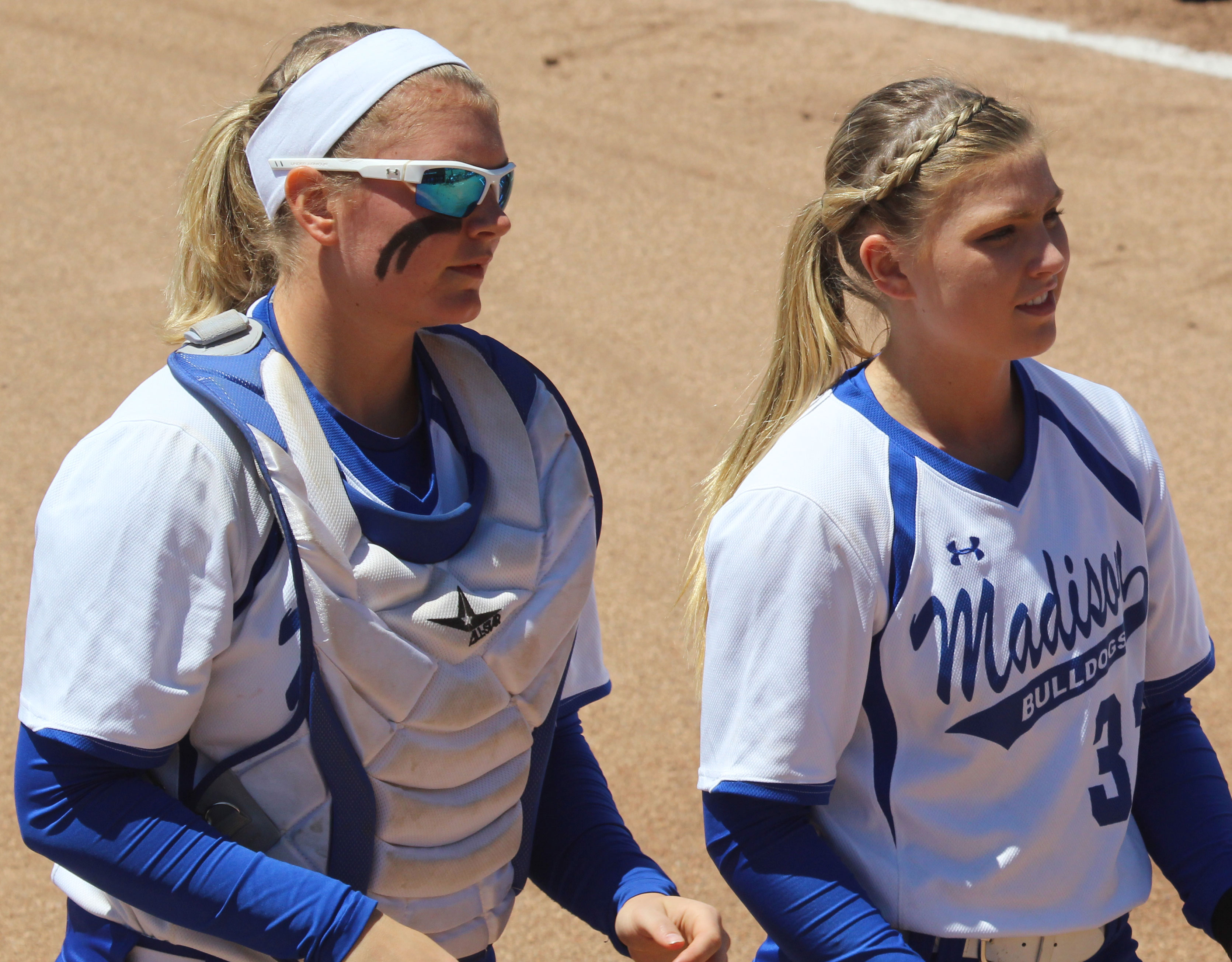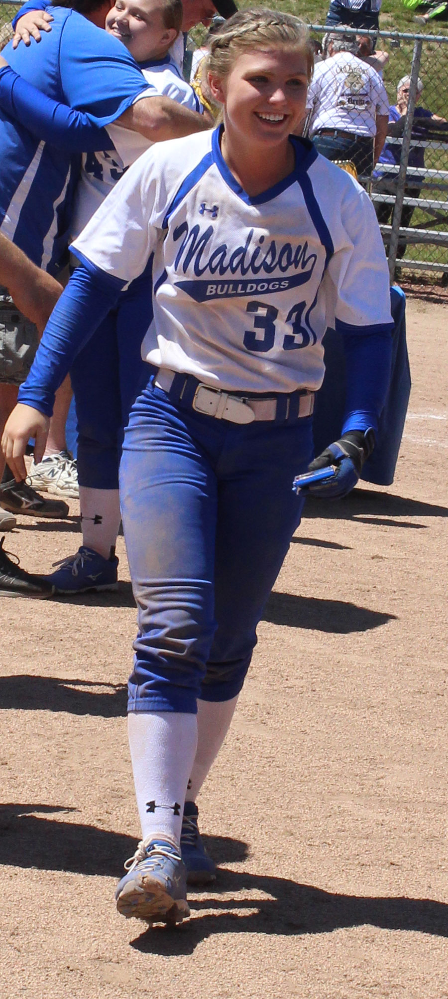 This game was tied at 1-1 into the bottom of the sixth inning before a second-life triple by senior Aly LeBlanc gave Madison the lead.  Senior Erin Whalen followed immediately with a sacrifice fly to left and the Bulldogs had a two-run cushion.