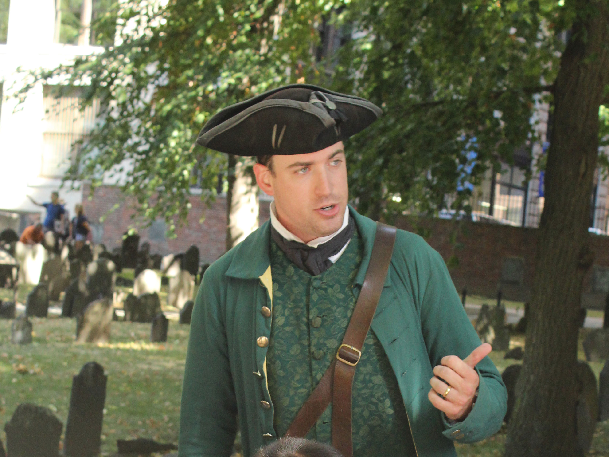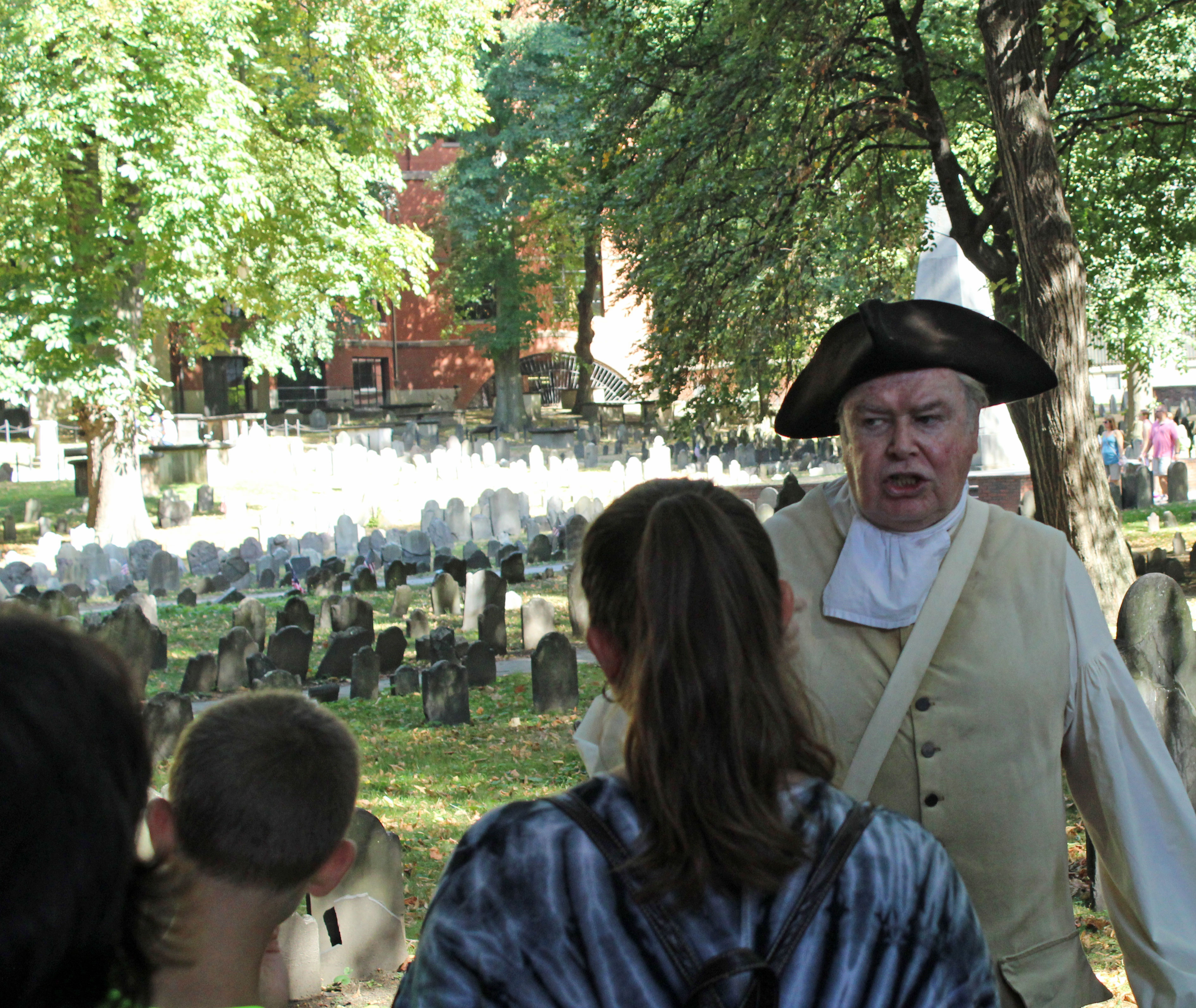 After the buffet I had plenty of time to walk down to the Common. On the way I got into the cemetery (next to Park Street Church) to check out the tombstones of Samuel Adams and John Hancock. I also caught a couple of tour guides in costume.