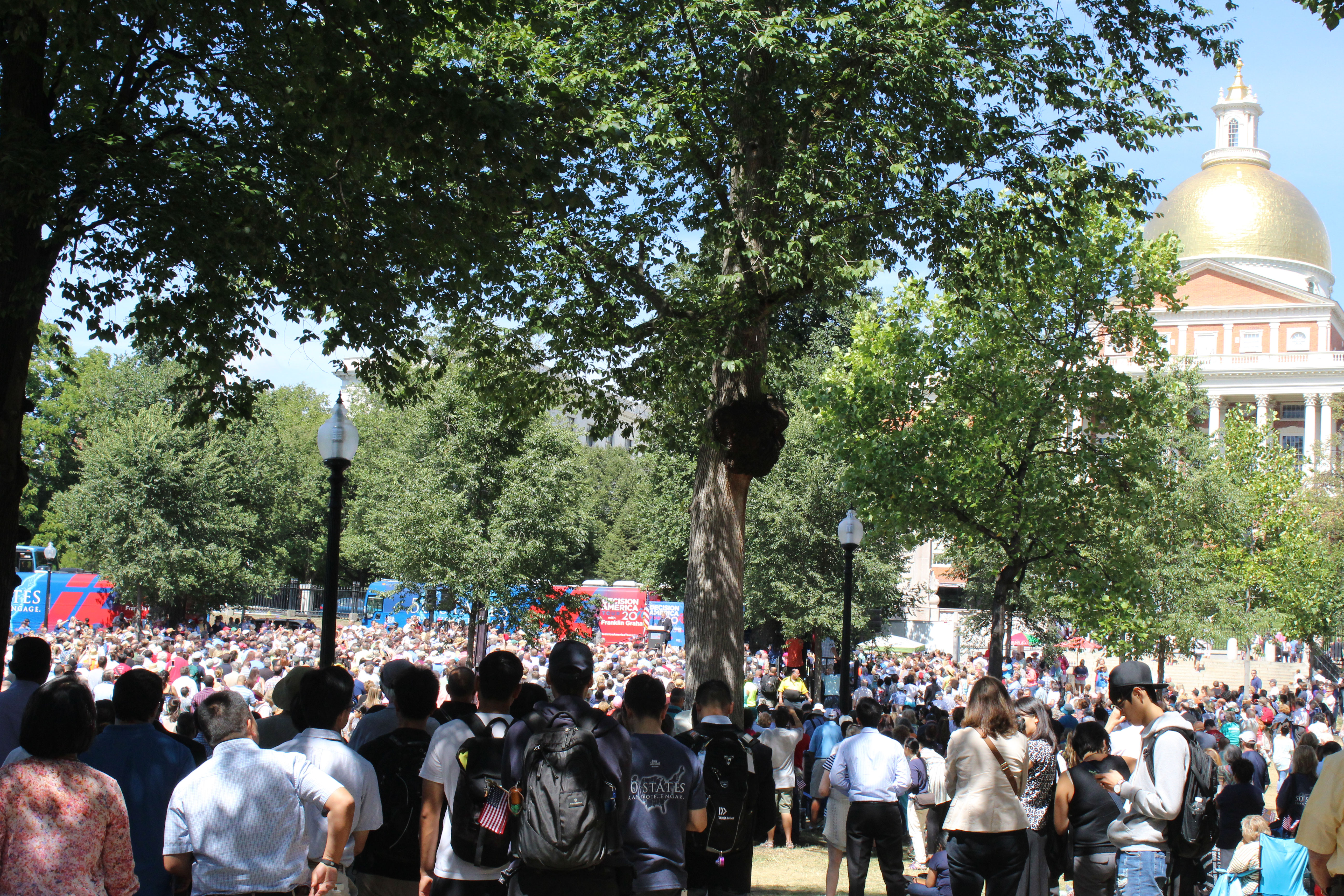 The reception was at the Omni Parker House on School Street and the gathering was on the nearby Boston Common at noon.