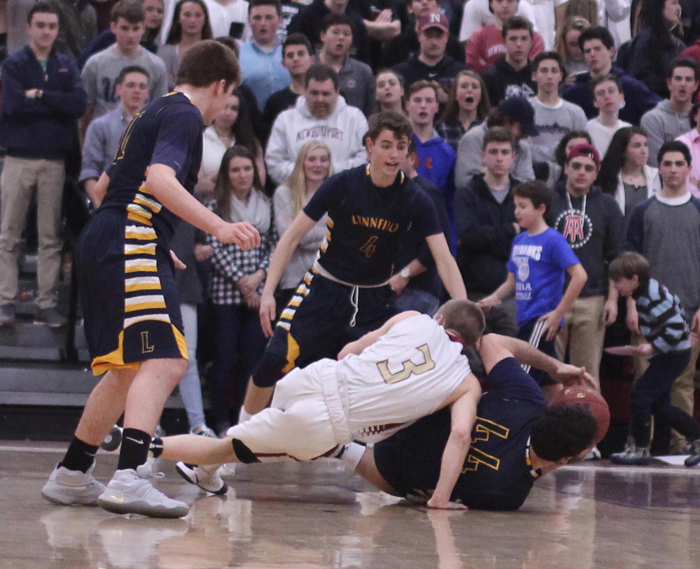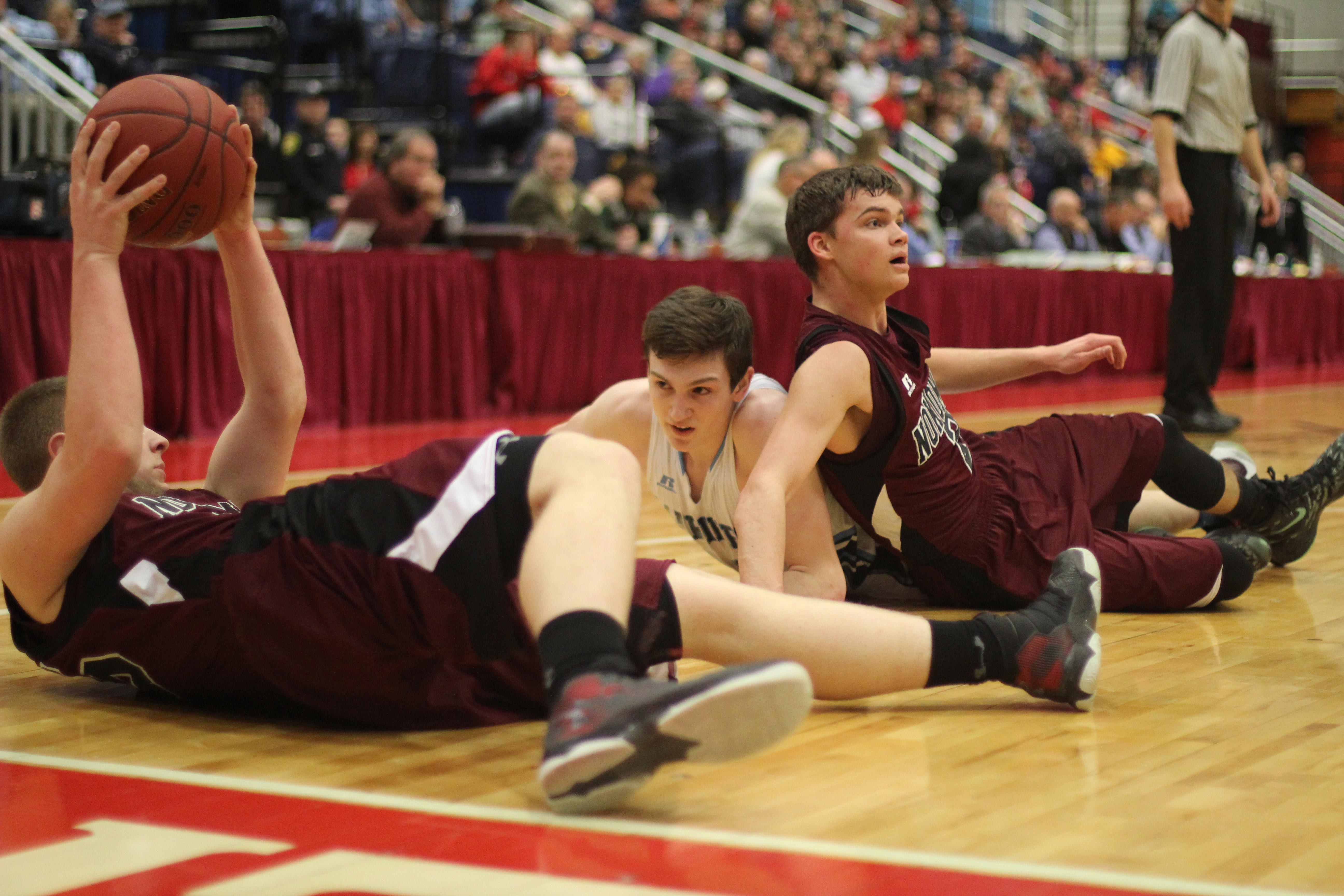 Time for Pentucket to look to be in serious trouble. But with two close games versus Triton this season you suspected that they weren’t done. An old-fashioned three (Nate McGrail), a jumper (Spencer Pacy), and a Conor O’Neil triple put Pentucket within two 38-36 with 3 ½ minutes left. Anyone’s game.