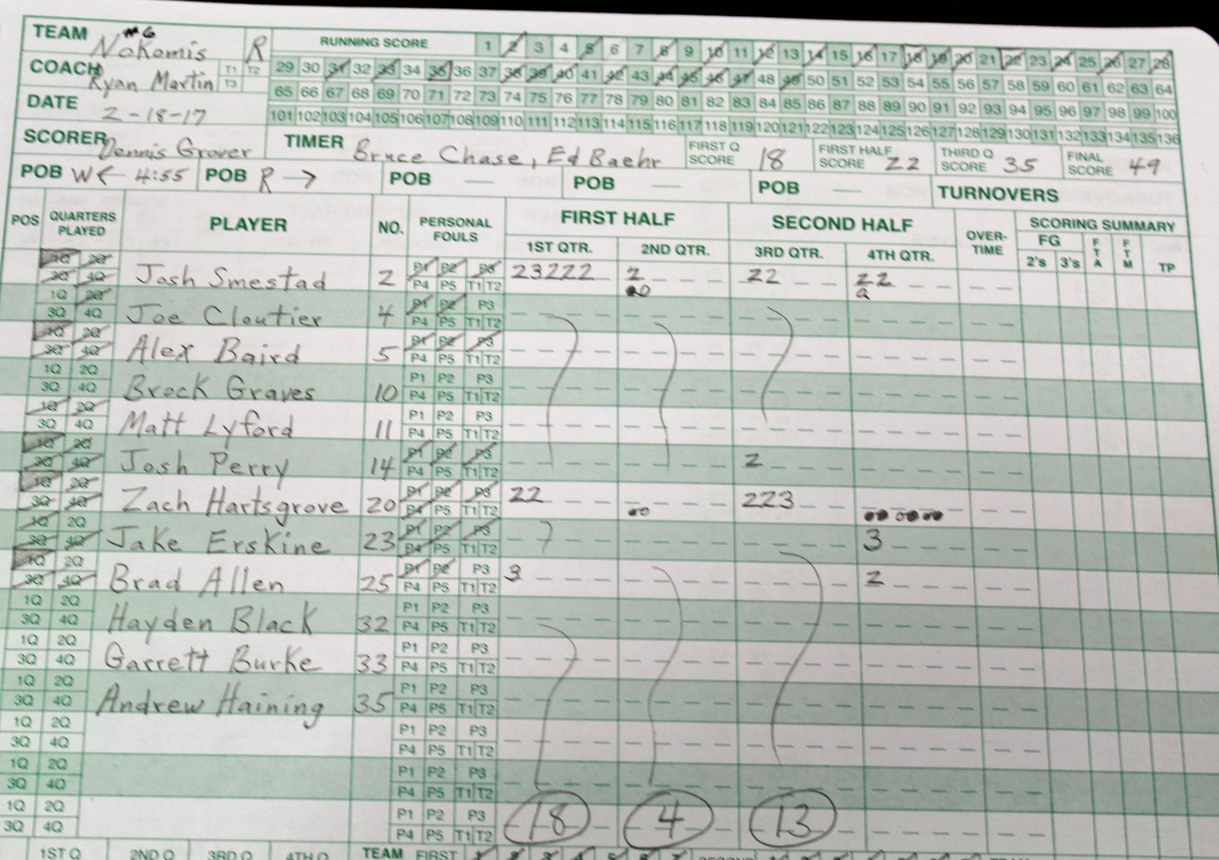 The Vikings during this same segment combined a layup by Jack McCarthy, a three by Will Parsons, and another layup by Jack McCarthy and this restored their eight-point lead (45-37) with a minute left.