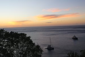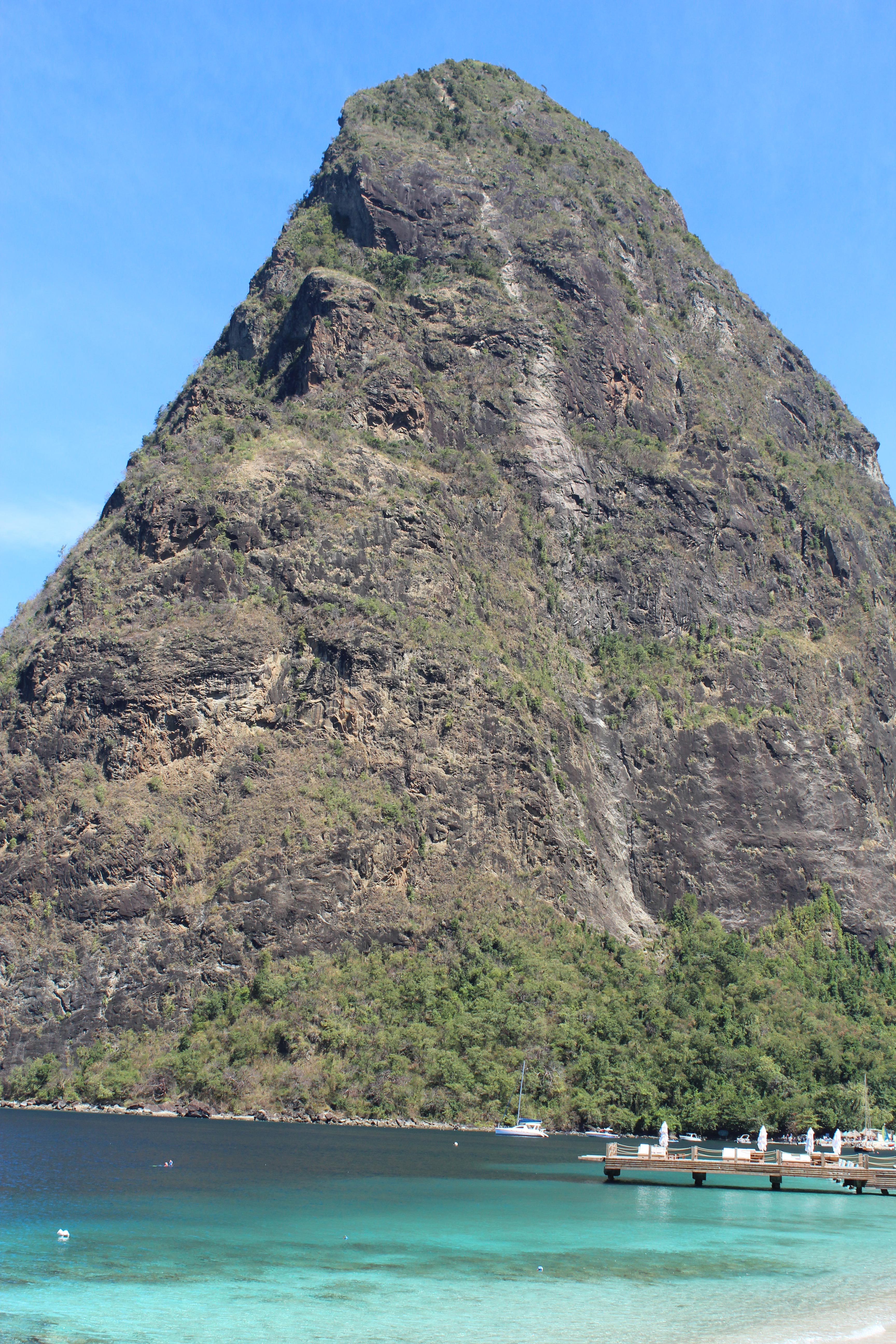Boats of all types sailed past checking out the Pitons. One day a five-story tour boat was out there and you could see many flashes go off from cameras. Then the boat turned around and the flashes came from the other side.