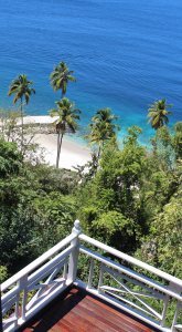 The view was different from any other Caribbean place I had been to because we were not at sea level. We had an “overlooking” view of the beach below. No wonder the video of Arc En Ciel didn’t show water nearby. Water was indeed nearby but it would necessitate walking a very steep road close to a quarter mile in length to get to Sugar Beach………..and then there’s the walk back!
