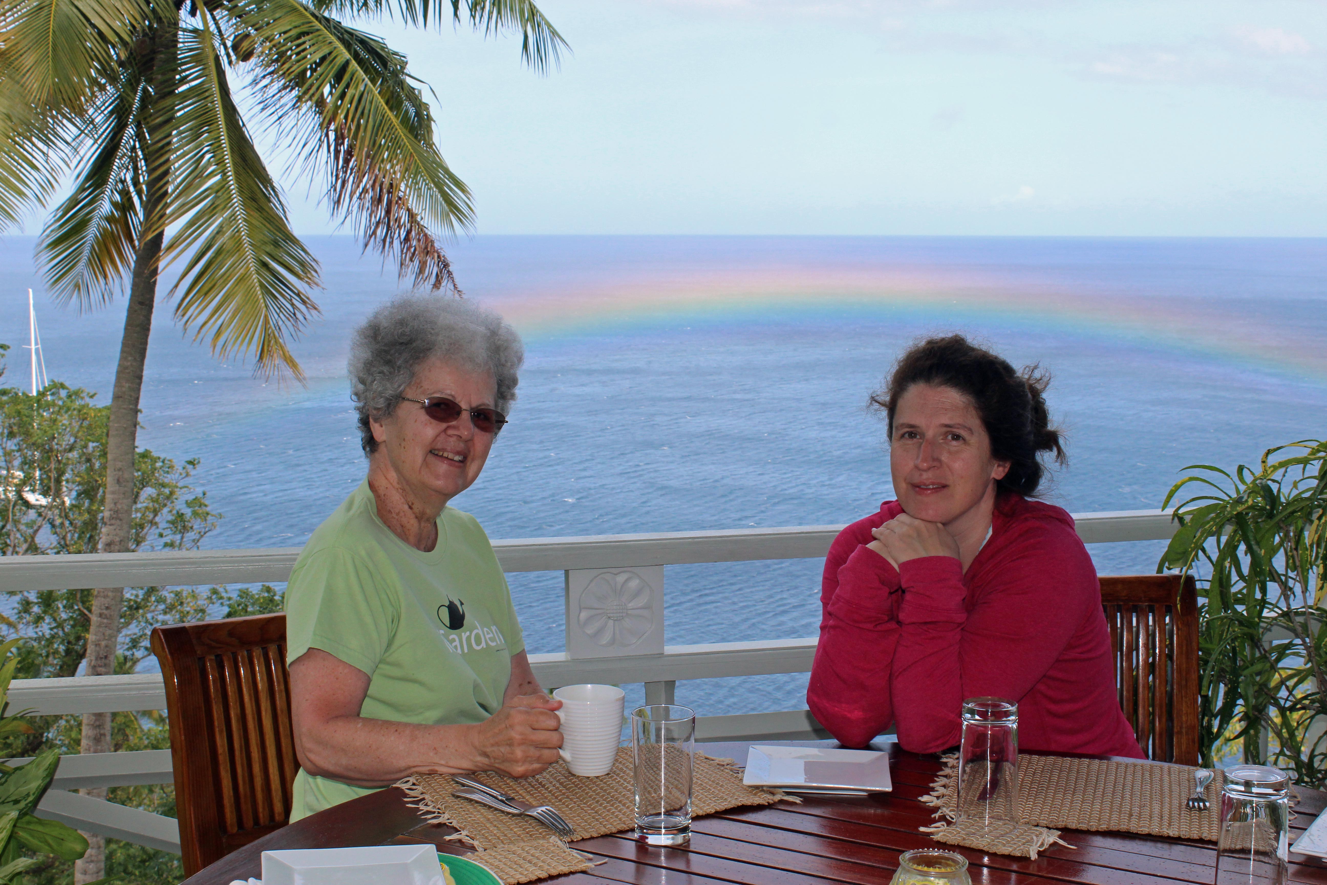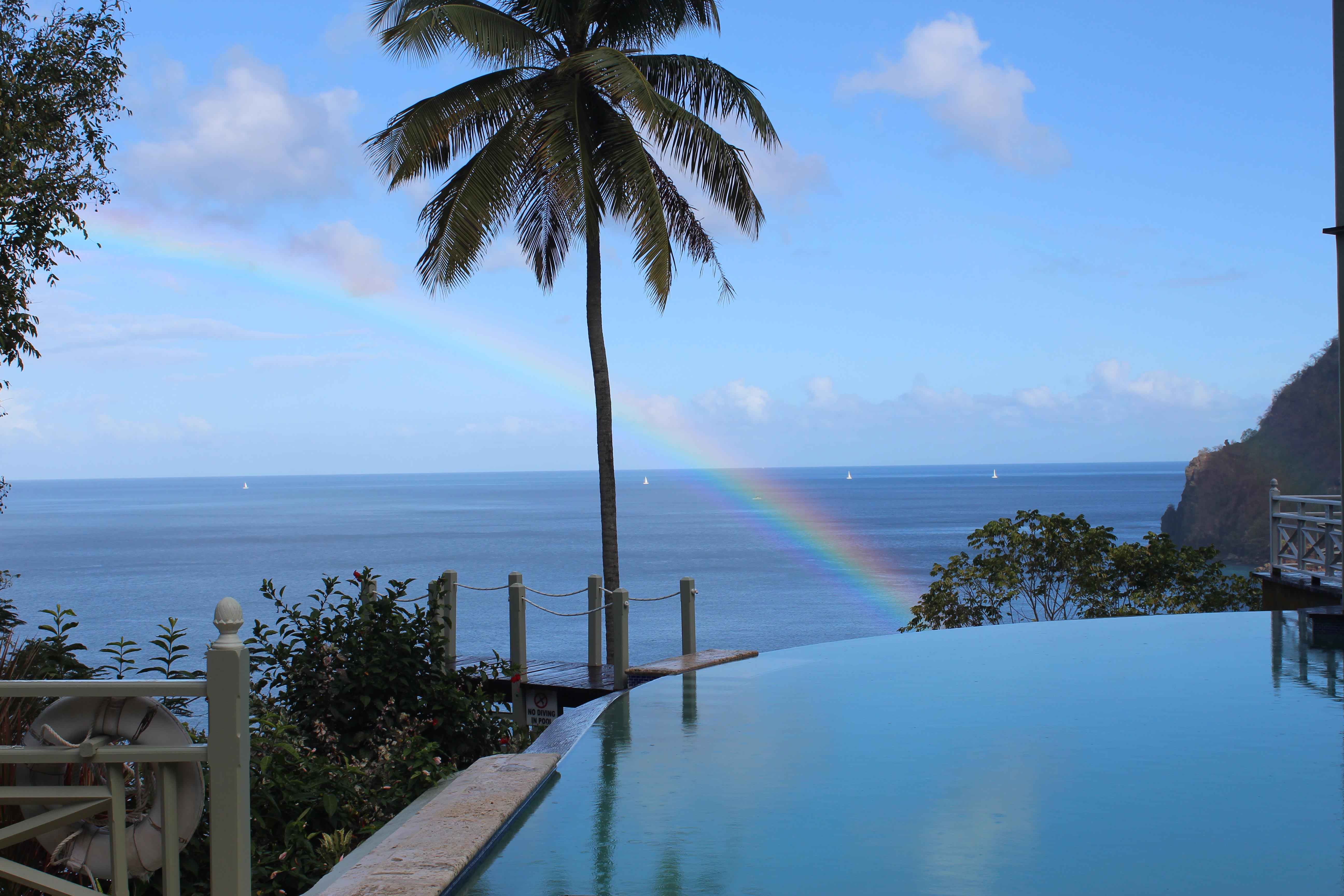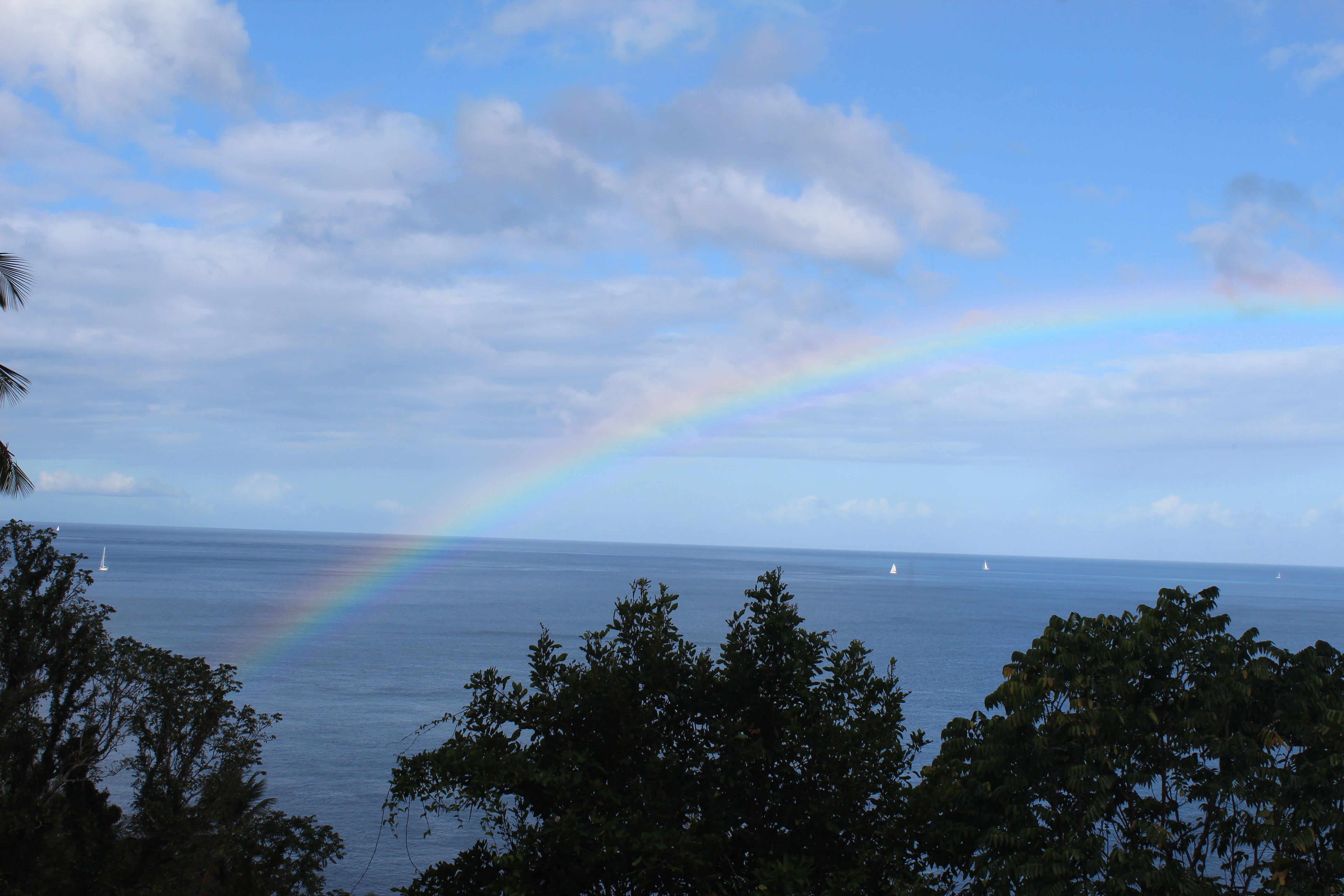 Best part about St. Lucia, other than having extended time with family? The rainbows. Arc En Ciel means, “arch of color.” Sometimes you think of rainy conditions as being a downer. Not this place. What rain meant was that there would be another rainbow. And from the elevated spot we were at, we had marvelous views from the porch of each rainbow that came along.