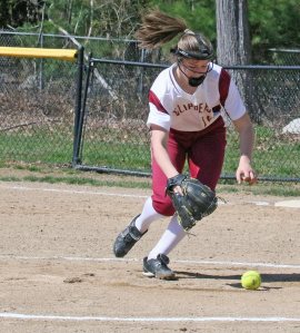 That sixth inning looked promising for the Clippers. After a dropped fly ball (Lindsay Joubert CF) and a single (Meghan Winn), there was a single by Jade Carpenter. Bases loaded? Not today. Meghan overran second and Kerri McLaughlin’s throw to SS Molly McGonagle produced an out at second. Newburyport ended up getting just one run out of an inning that could have started with the bases loaded and no outs.