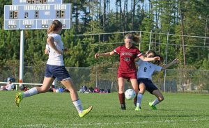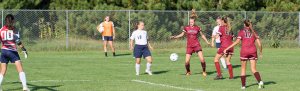 Noah Breton’s goal was a beauty. Captain Sam Walker’s corner kick was head high and Noah’s was the head that connected with it. LR goalie CJ Ferguson had the middle of the net covered but Noah’s header went into the left corner. Nice play.