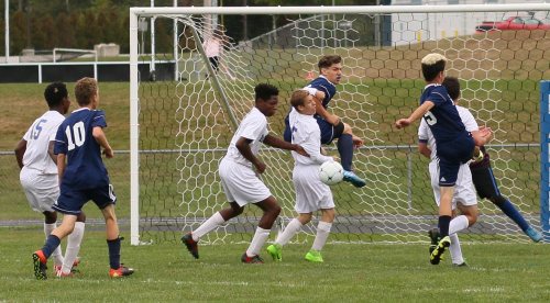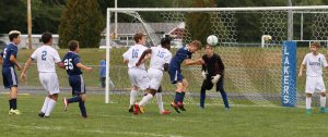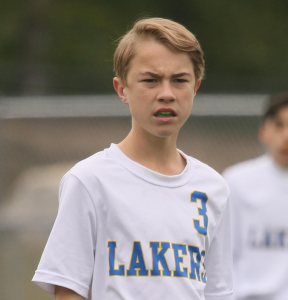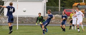 Noah Breton’s goal was a beauty. Captain Sam Walker’s corner kick was head high and Noah’s was the head that connected with it. LR goalie CJ Ferguson had the middle of the net covered but Noah’s header went into the left corner. Nice play.