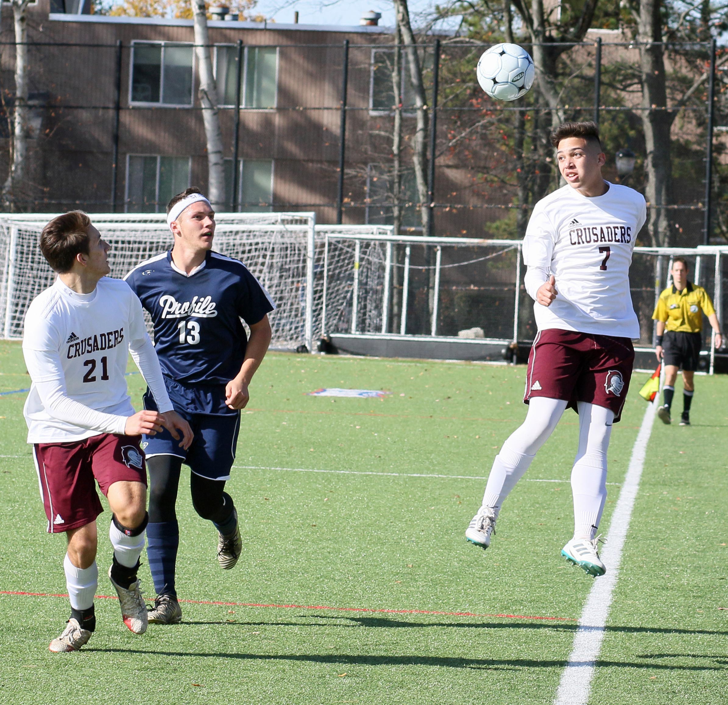 Christian Silveria (20) heads a shot just wide of the Profile net.