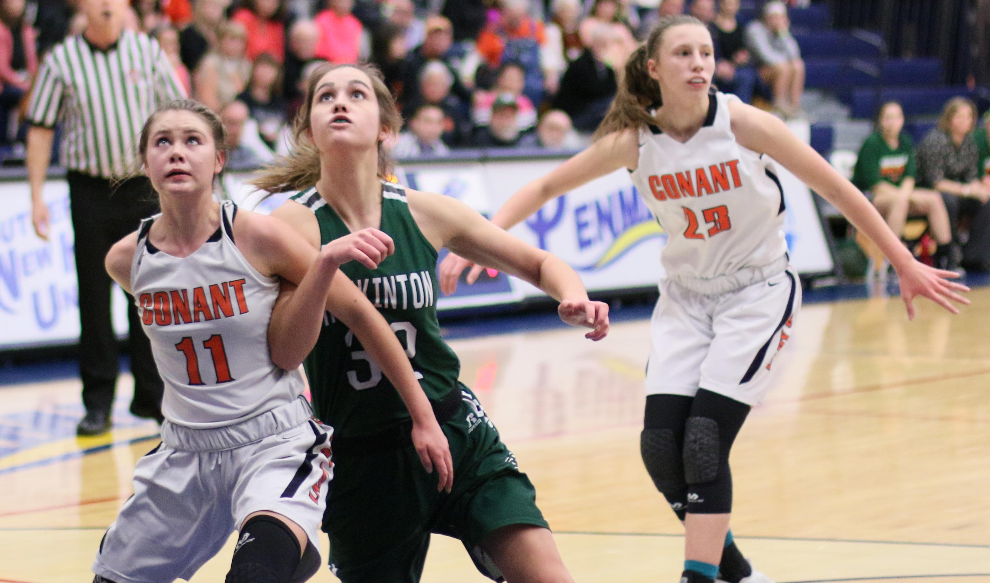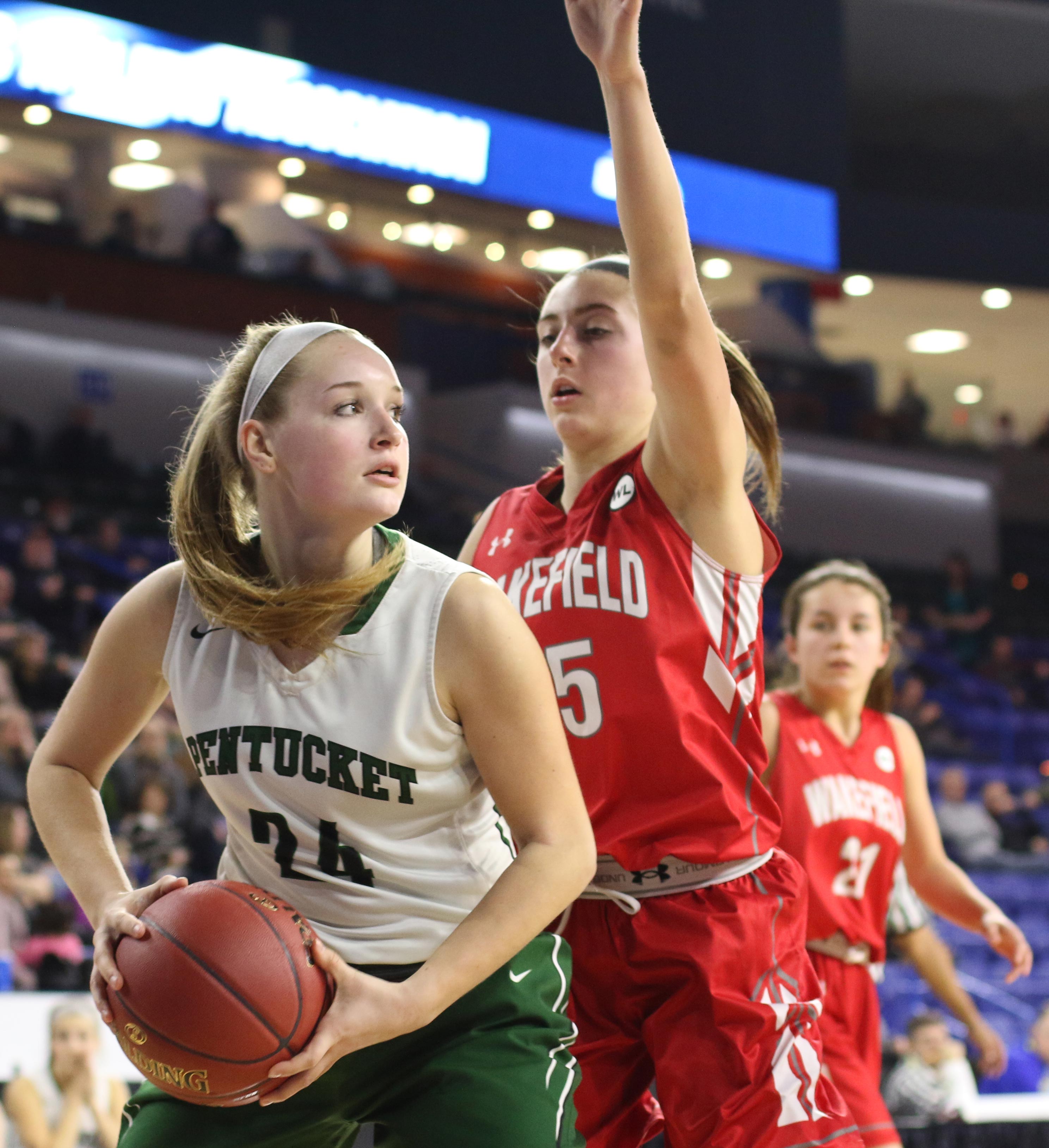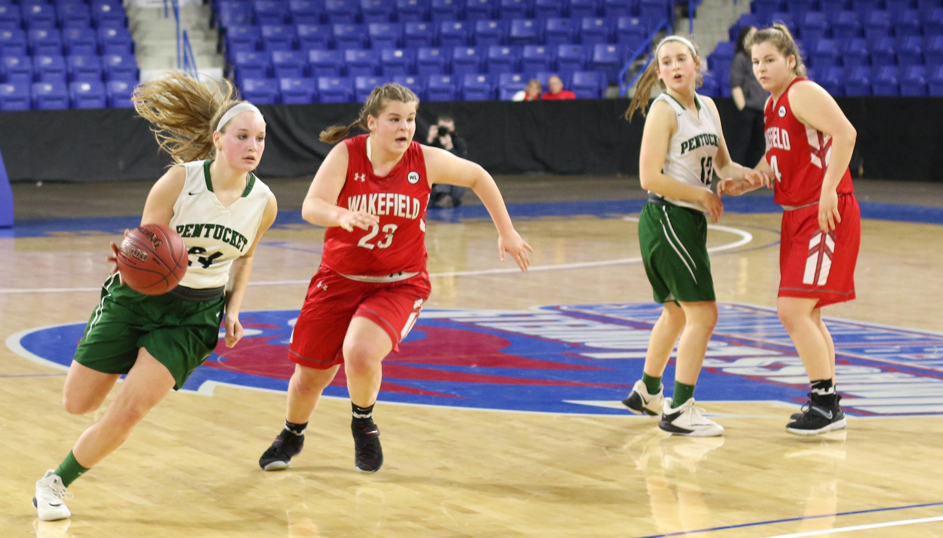 The standing-room only crowd at Lundholm Gymnasium, saw Portsmouth excel in the late game and defeat Dover, 46-38, on the UNH campus on Saturday afternoon. This was the Clippers third straight title.