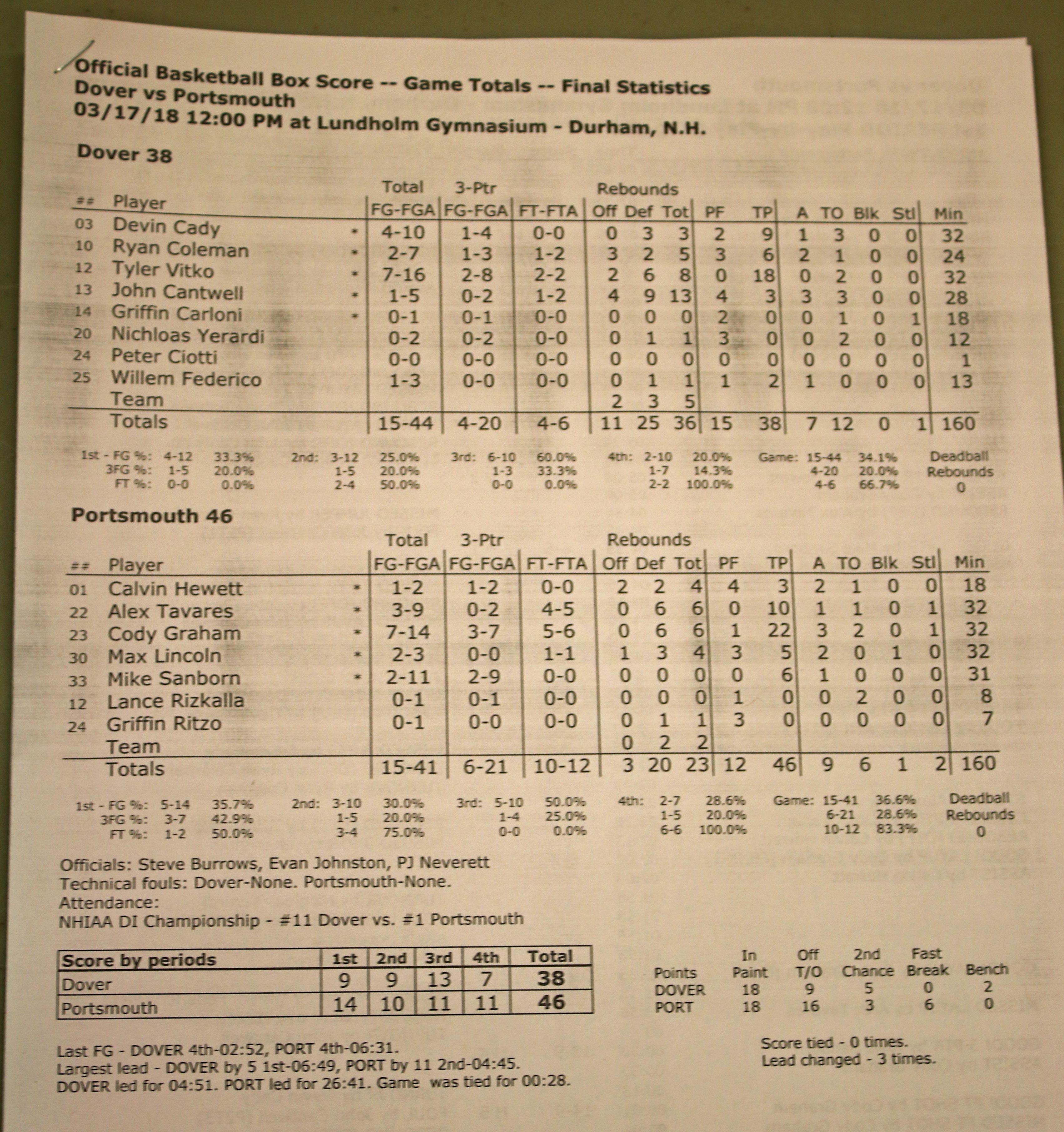 But Portsmouth had an 18-2 season and #11 seed Dover upset three higher seeds to gain the Big Game.