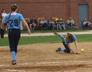 In the 4th inning shortstop Bridget Sheehan made a nice running catch in left. Later, in the same inning, she was able to handle a two-out grounder despite having baserunner Abby Aponas go in front of her just before the ball got to her.