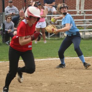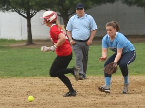 Not surprising to Coach Dupere was the play of his infield. “In my opinion, we have the best infield in the league.” Hard not to agree. With Katherine Quigley keeping the ball down, there were plenty (fourteen) of infield grounders.