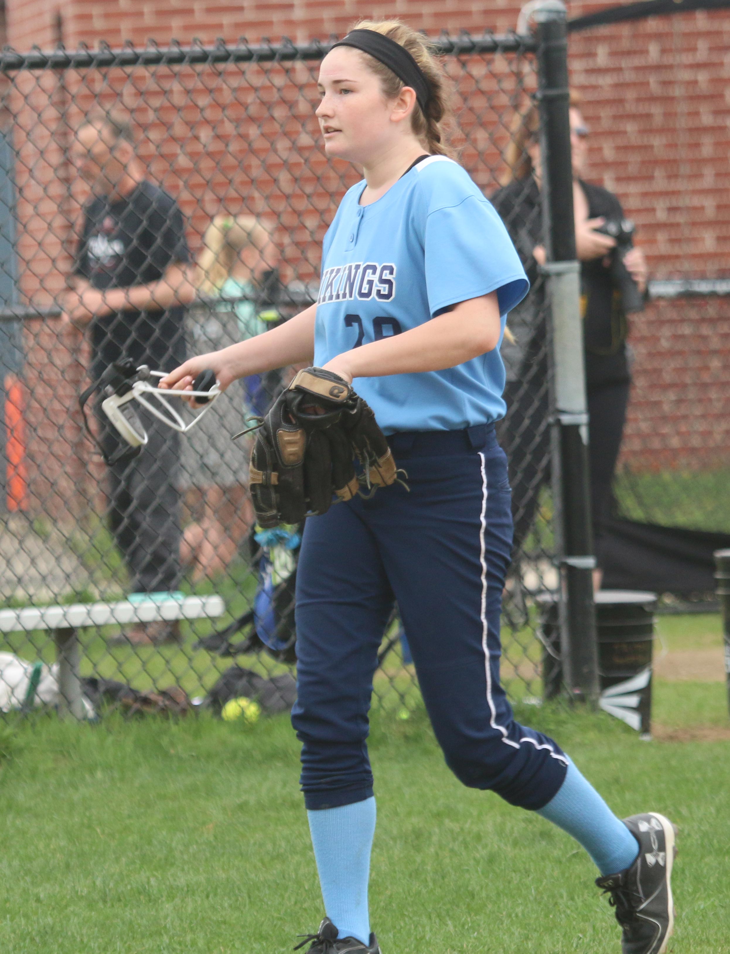 “That first-batter homer was a shock,” said Vikings shortstop Bridget Sheehan, “but we are good at bouncing back.”