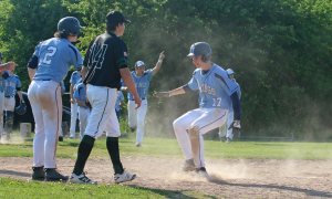 The Hornets started that productive sixth inning with a Bennett O’Leary homer. Then ME put three singles and a walk together for another run. Out went Tommy Lapham and in came Mark Glickman. Two errors, two hits, and another walk and the Hornets caught the lead. Cosmo Pallazola’s sacrifice fly padded the lead to two runs heading into the bottom of the sixth inning.