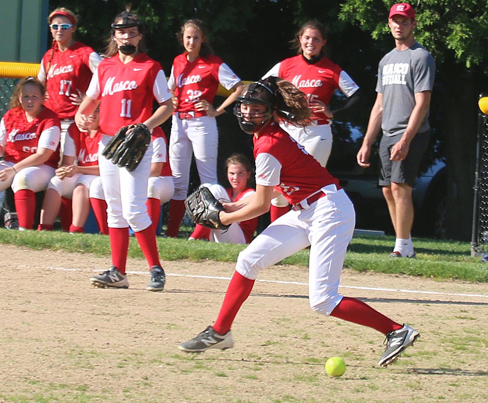 Masco coach Frank Kowalski used three pitchers (Alex Locke, Olivia Molloy, and Liv Filmore) during the game.