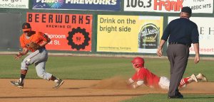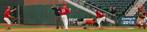 Dodd Stadium is one of those parks where you, as a spectator/photographer/player, need to be paying attention. Why? There is very little protection from batted balls. No fencing over the dugouts and down the lines. The announcer rightly alerted folks to tune in to the action. I didn’t see anyone get hit but I did see a foul liner streak just over the concession stands on the concourse. Someone serving or someone in line was fortunate.