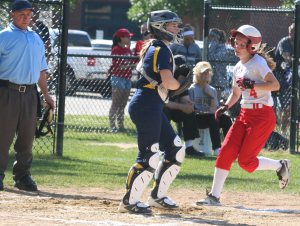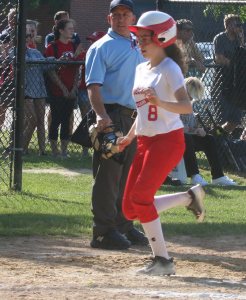 Freshman Maddie DiPietro crosses home in the sixth inning with the game-ending run