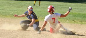 Shortstop Chloe Shapleigh sets to tag out Emma DiPietro