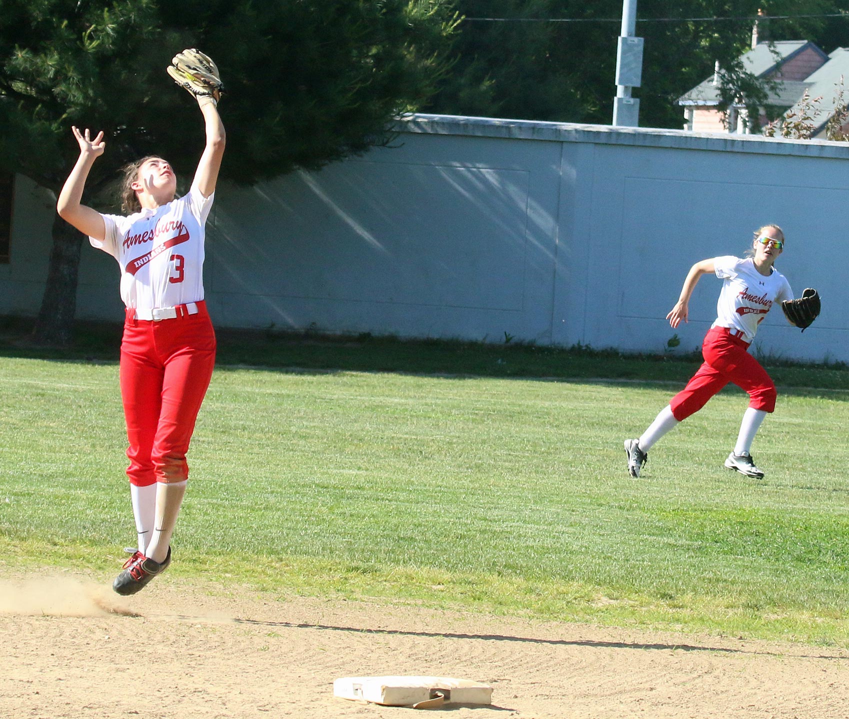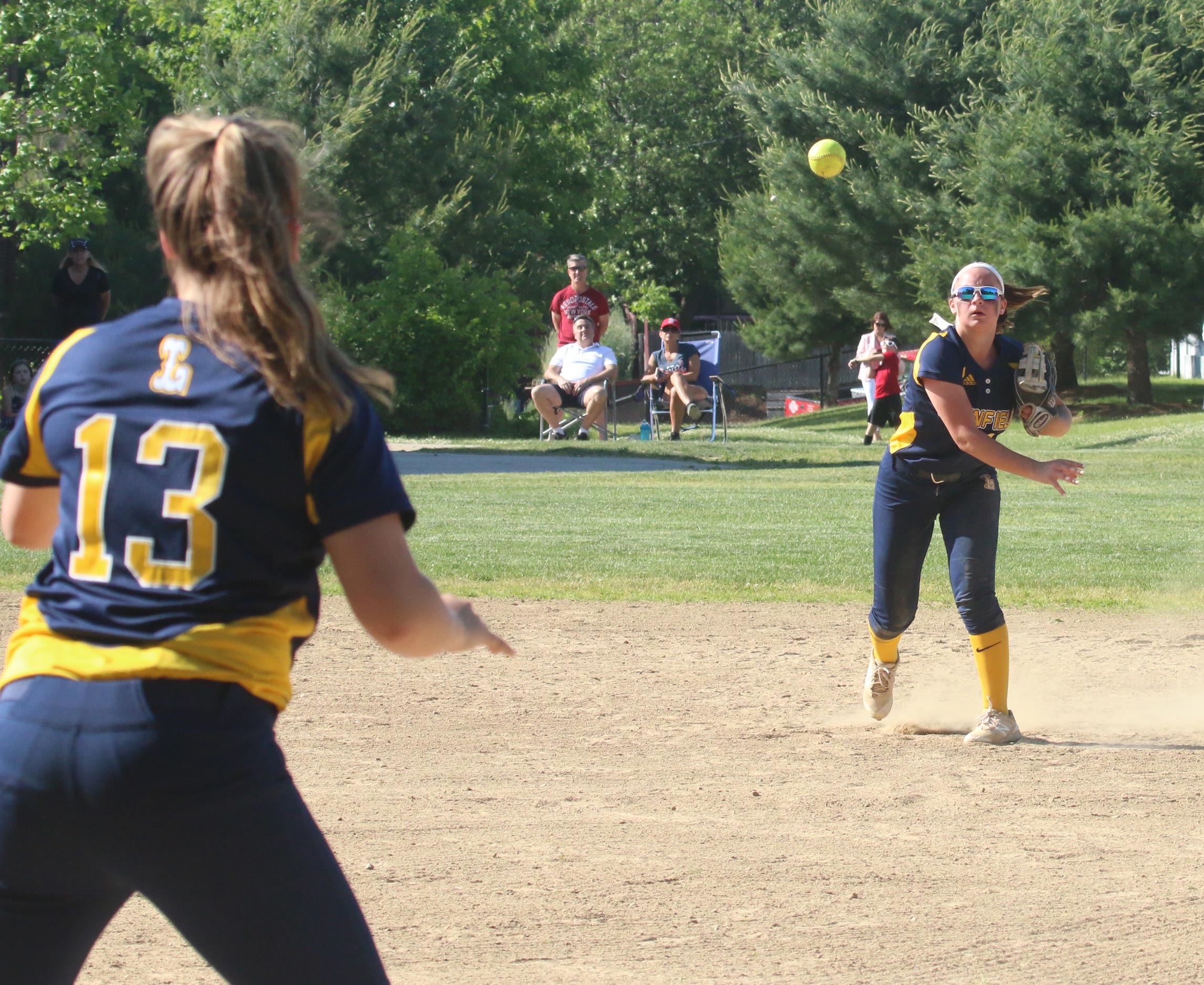 Shortstop Chloe Shapleigh sets to tag out Emma DiPietro