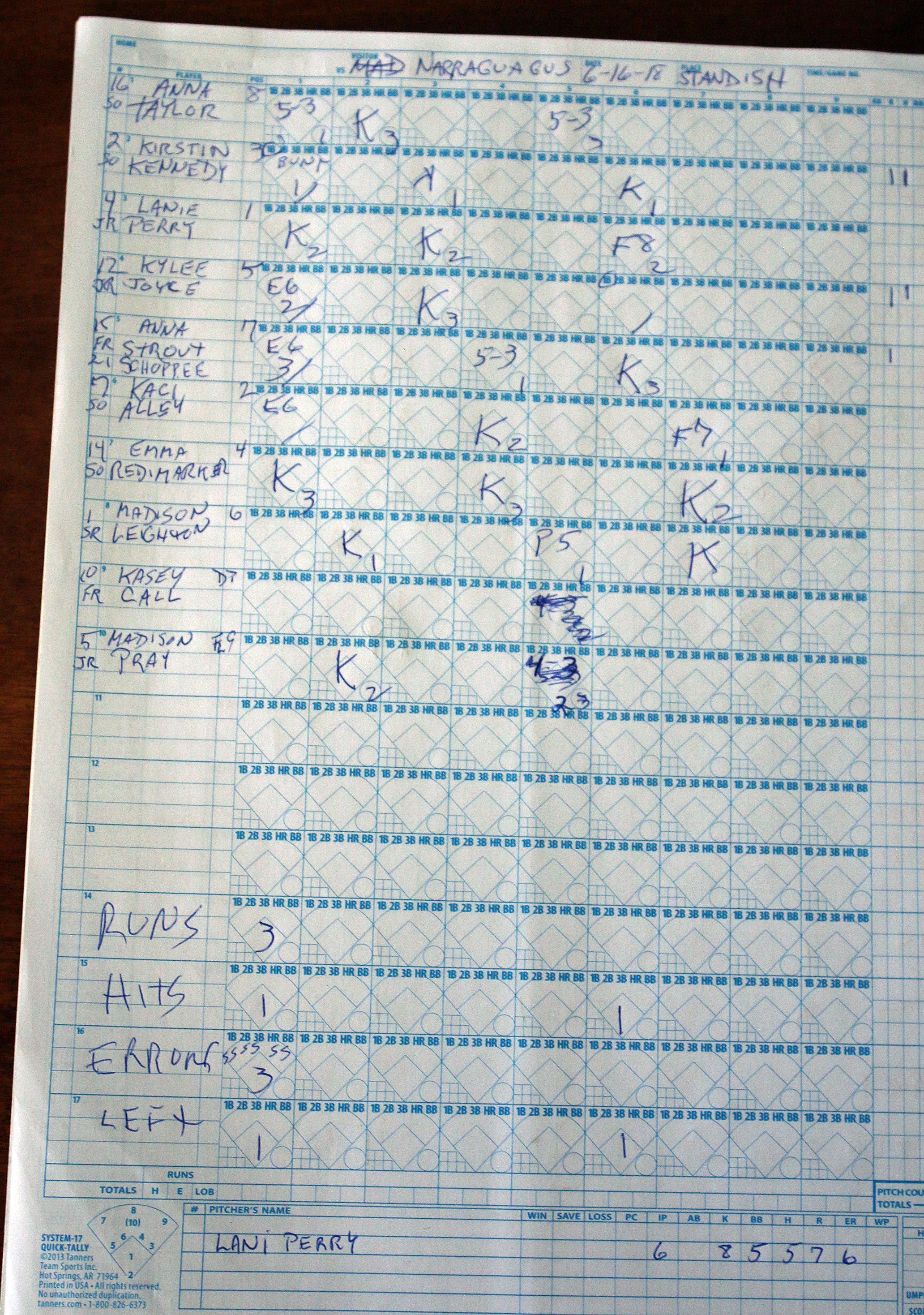 Ashley Emery: “Lauria’s outside pitch was effective as well as her changeup.  Part of what I called was based on where the batter was standing.”