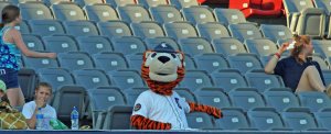 I continue to wait for a mascot to outrun one of the young attendees.  I try to analyze the races to see where they get lost.  In today’s run, I think that the Tiger mascot was overmatched.  His opponent had plenty of speed and once he had the lead it was over.  In my opinion, the race was given away at the start.  The young opponent was past the first-base bag and heading to right field but benevolently the Tiger mascot redirected him.  That’s all this speedy kid needed!  Maybe next time.