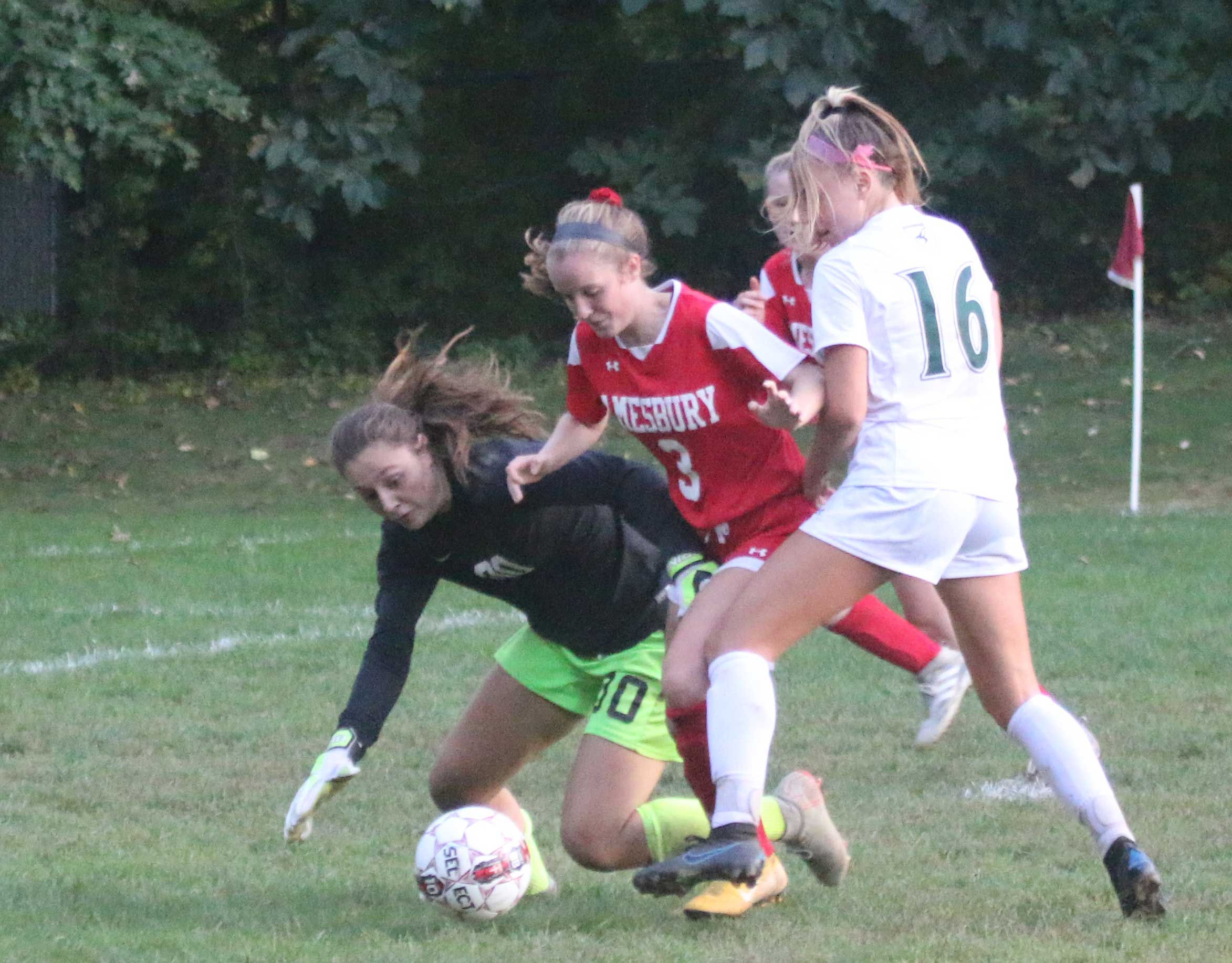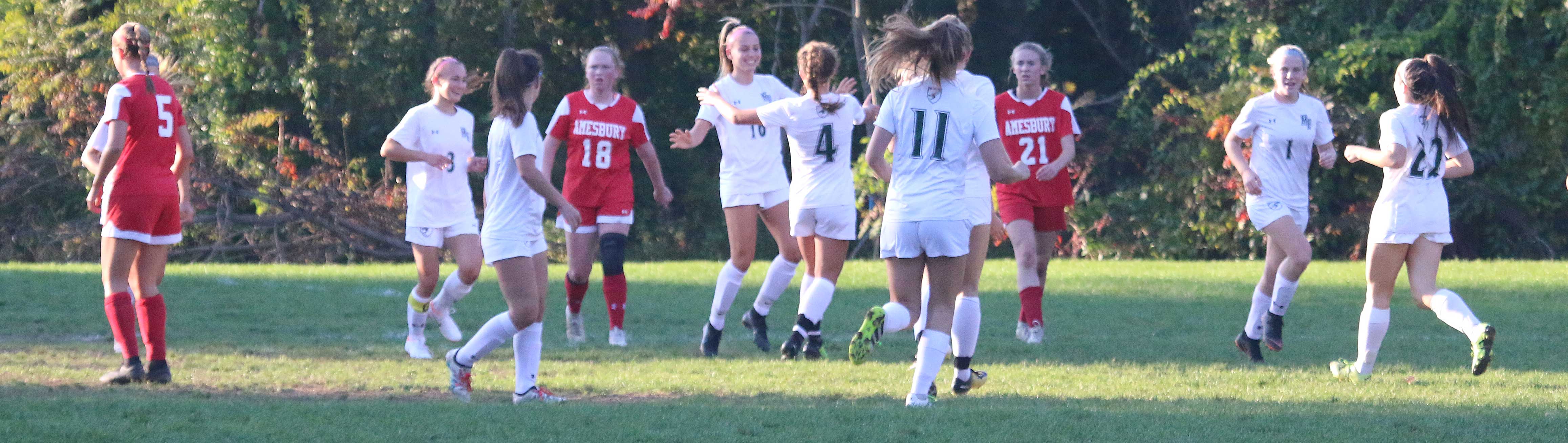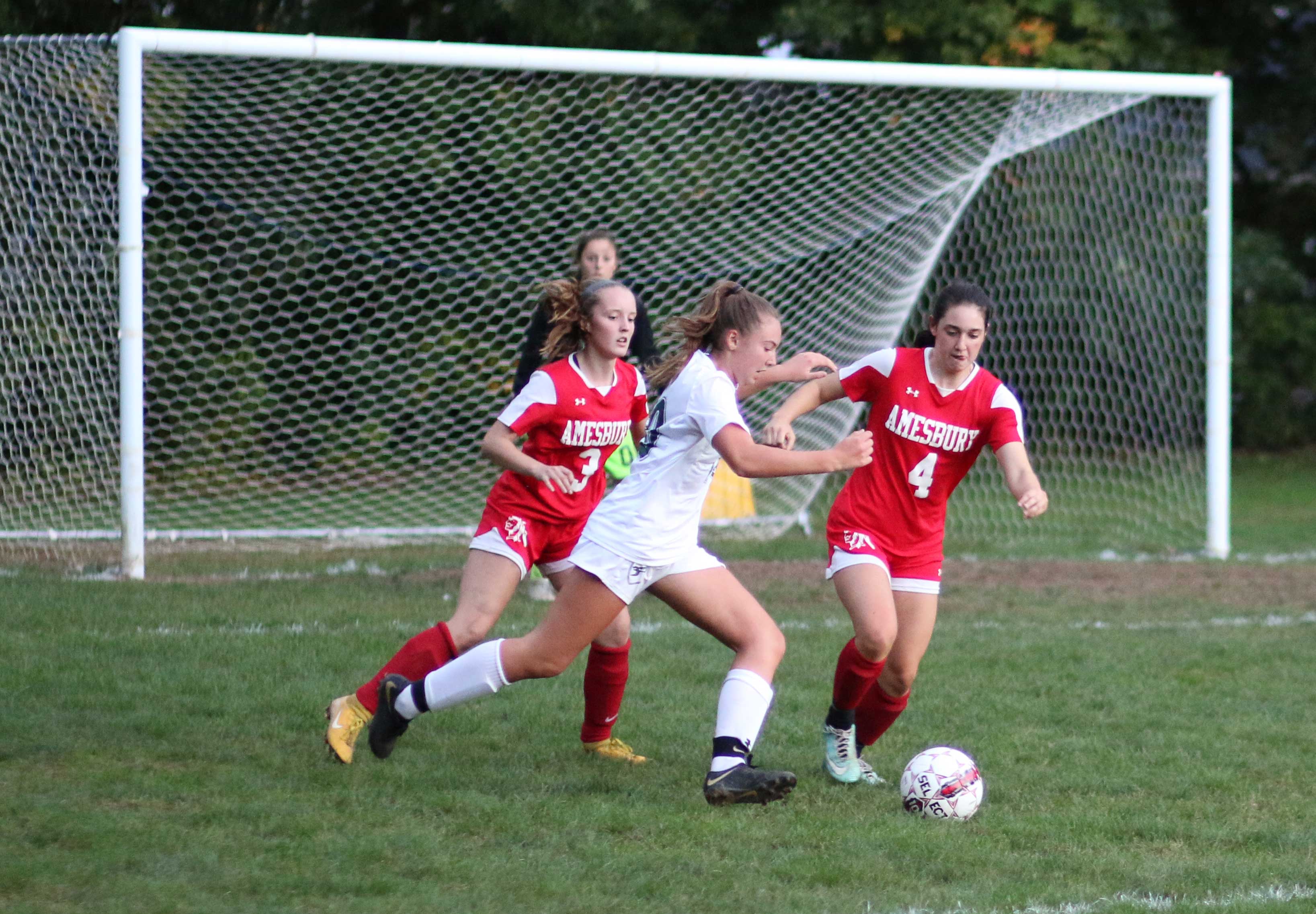 The visitors tallied a goal in the first forty seconds and by the end of eleven minutes had two more. Amesbury never recovered.