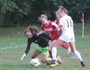 The catalyst in the Hornets’ three goals was sophomore Dasa Hase.  She had the opening goal, assisted Jill Bowen on the second, and scored the third.