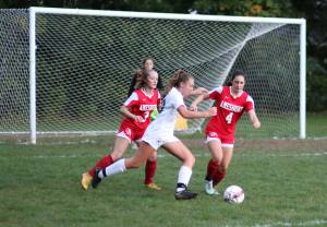 The catalyst in the Hornets’ three goals was sophomore Dasa Hase. She had the opening goal, assisted Jill Bowen on the second, and scored the third.