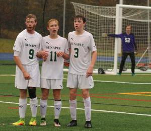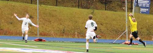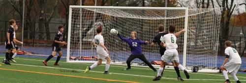 It did look, however, as if Sunapee had allowed a goal at 29:29 of the second half. Mules junior Nick Berthiaume caught up to a ball on the left side, defended by Matt Nangeroni. Nick got off a shot and it beat Sunapee GK Justin Claus.