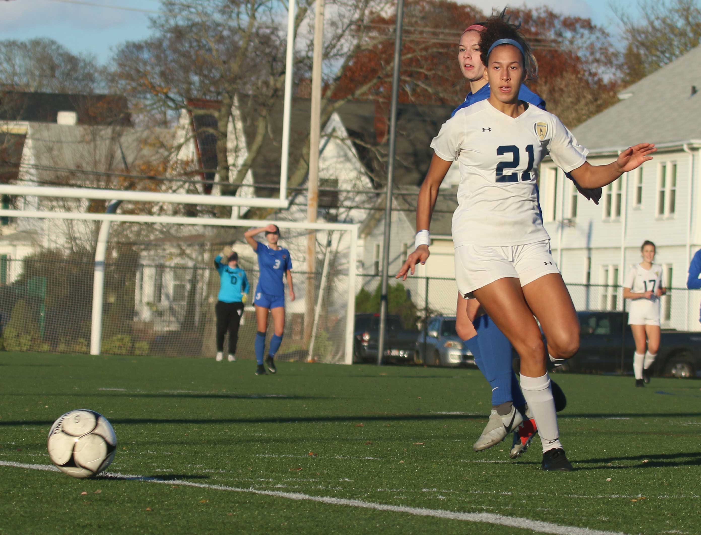 I saw Lexington put plenty of pressure on North Andover in their semi-finals victory. Not today. The Warriors did an excellent job of containing sophomore Aleia Gisolfi-McCready and freshman Kirsty Carnan.