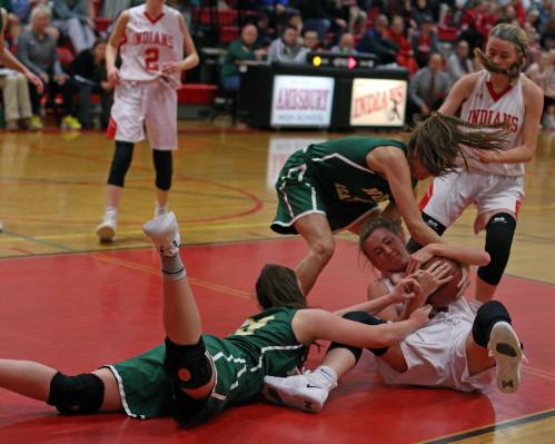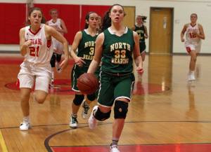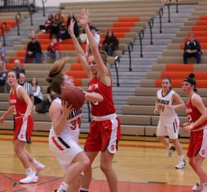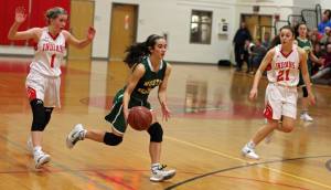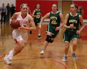 Senior Megan Walbrandt (11 points) commented on the Indians improved play in the second half. “We played a lot more unselfishly. We were looking for the open person by making the extra pass. We were able to find the open cutter.”