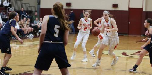 The Hallinan twins (Avery and McKenna) brought energy, points, and defense. The two freshmen helped carry the scoring load for the Indians in the first half.