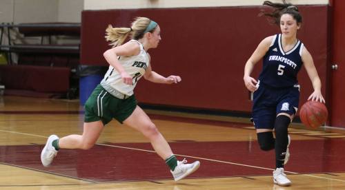 Alli Napoli (Amesbury) and Tori Morelli (Lynnfield) were both in early foul trouble and on their respective benches for much of the first half.