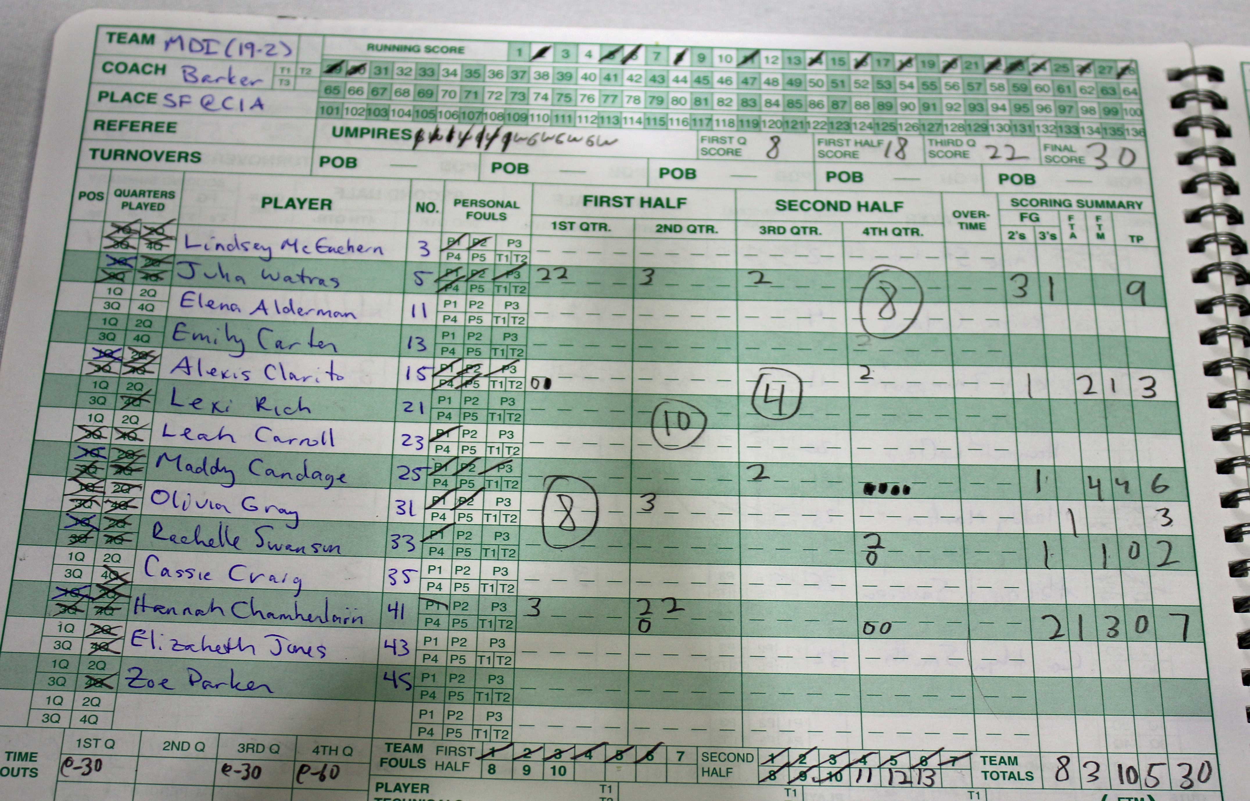 I was impressed with the ball-handling of sophomore Grace Klonsky. Several times she took the ball the full length of the court for a score.