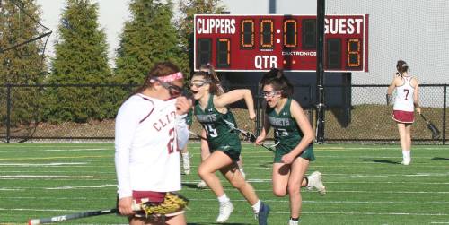 The defense of Lily Athanas on Maggie Pons (Cornell commit) was a key to the win. “She did a nice job shadowing a great player,” said Coach Gorton. Maggie had 112 goals last season but only two this afternoon.
