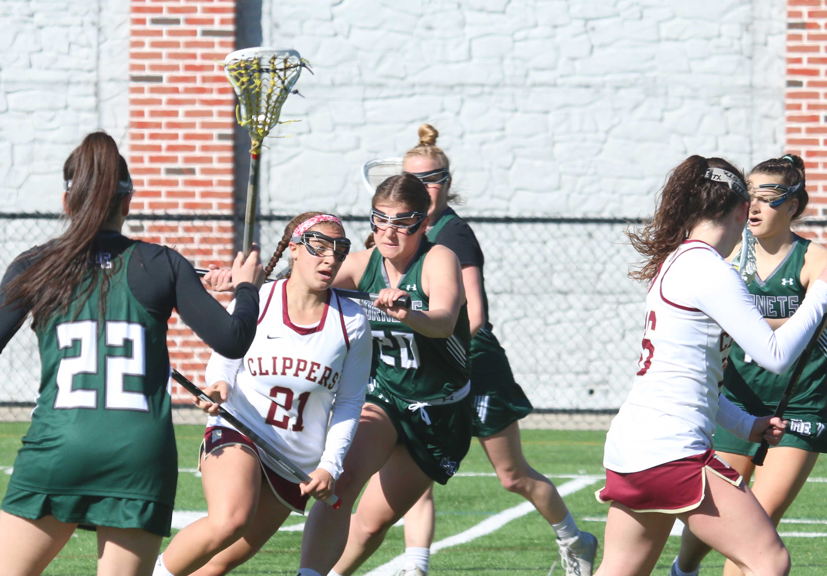 The defense of Lily Athanas on Maggie Pons (Cornell commit) was a key to the win. “She did a nice job shadowing a great player,” said Coach Gorton. Maggie had 112 goals last season but only two this afternoon.