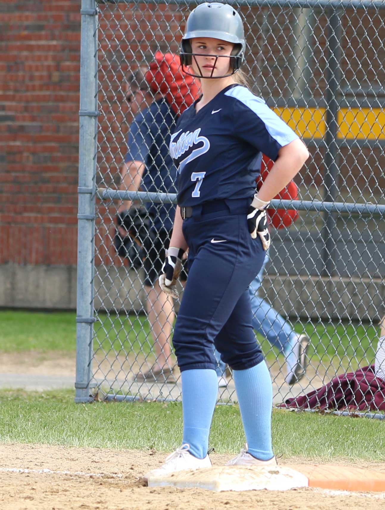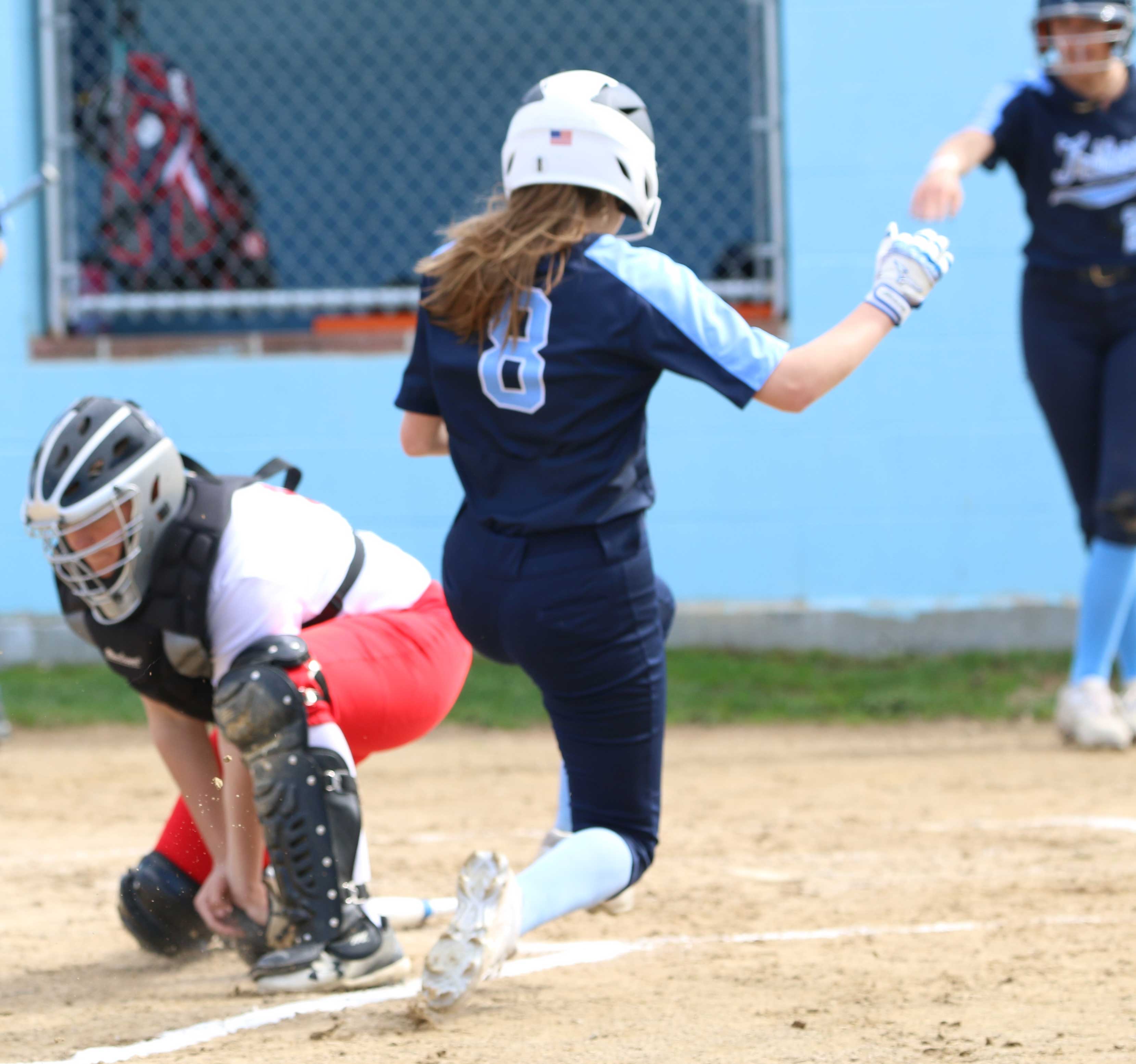 Freshman Molly Kimball’s bunt turned into an RBI (Darcie McDonough scored) and later Emily Karavielis’ shot to right center drove across two more (Carisa Boyle & Molly Kimball).