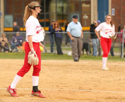 Freshman Alana Delisle pitched the last two innings for Amesbury.