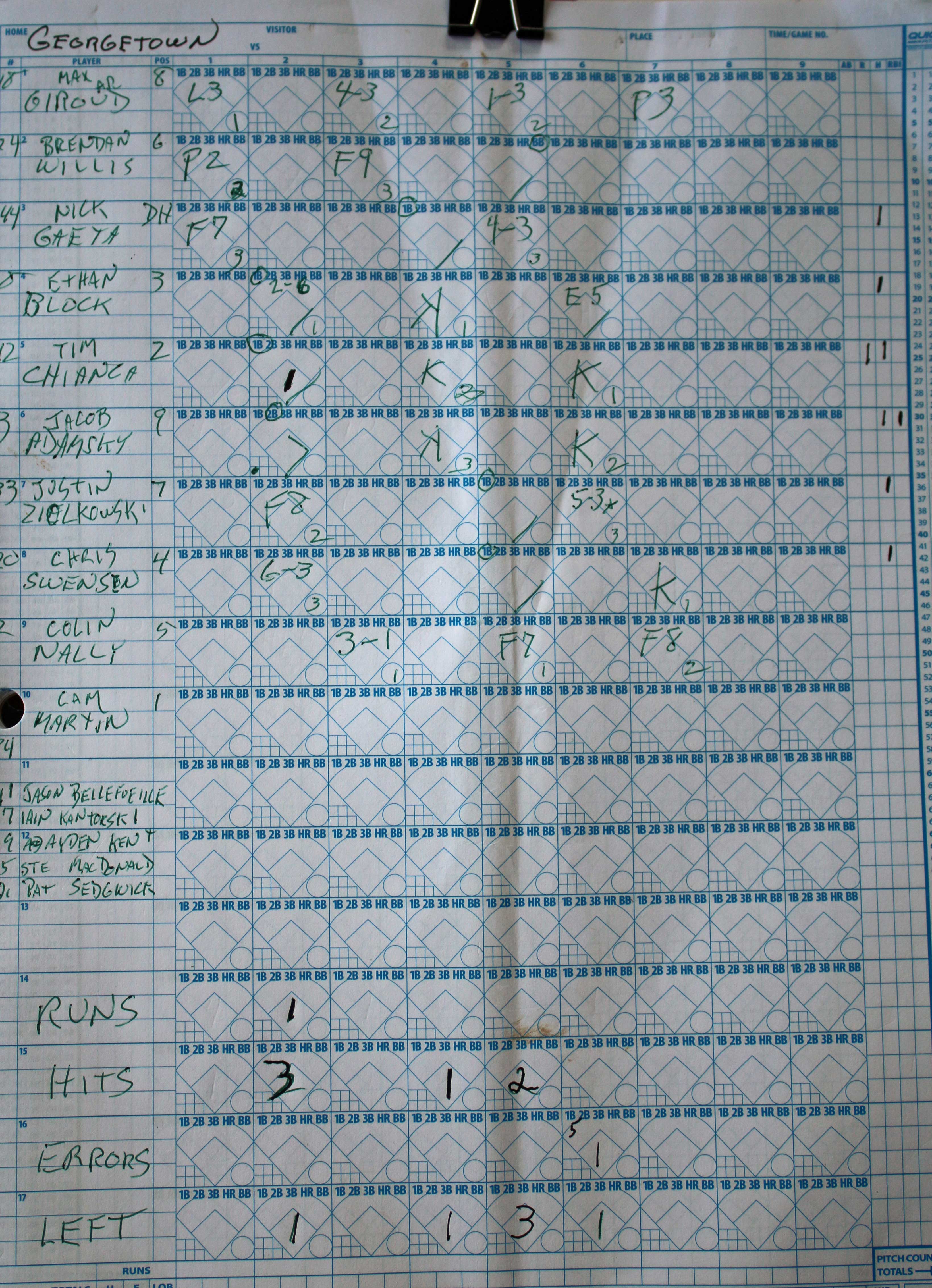 Evidence that it might not be Georgetown’s day appeared the second inning. First batter Ethan Block singled but then was thrown out stealing. A single (Tim Chianca) and a double (Jake Adamsky) followed producing a run.