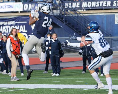 New Hampshire remains undefeated at home (4-0) and owning the home field factored into their second-half turnaround, according to Coach Ricky Santos. “In the first half, they (Villanova) were playing downhill on us. Halftime wasn’t so much the X’s and O’s. It was a matter of challenging the guys. Villanova was playing harder than us on our field. No one in our locker room was going to allow that to happen in the second half.”