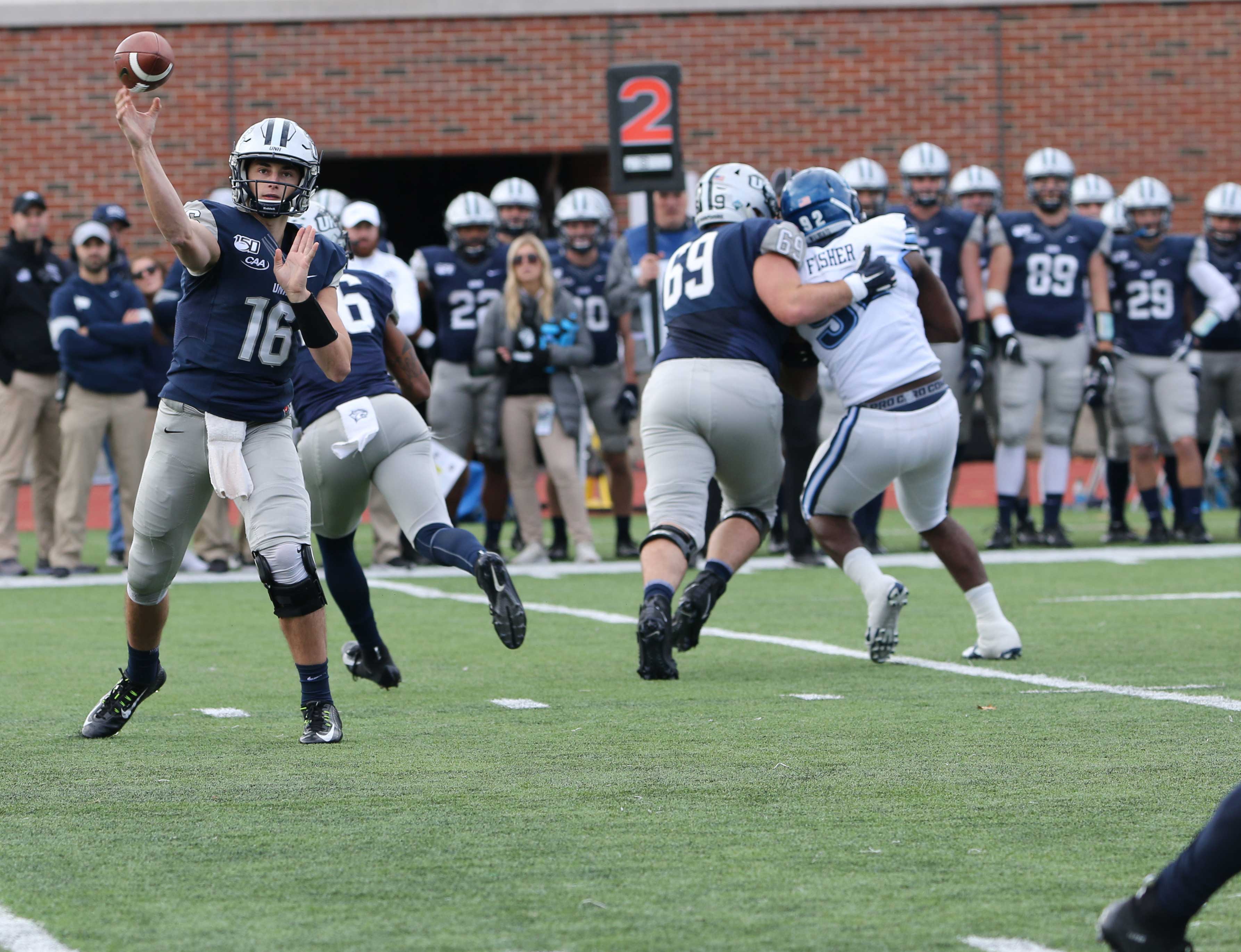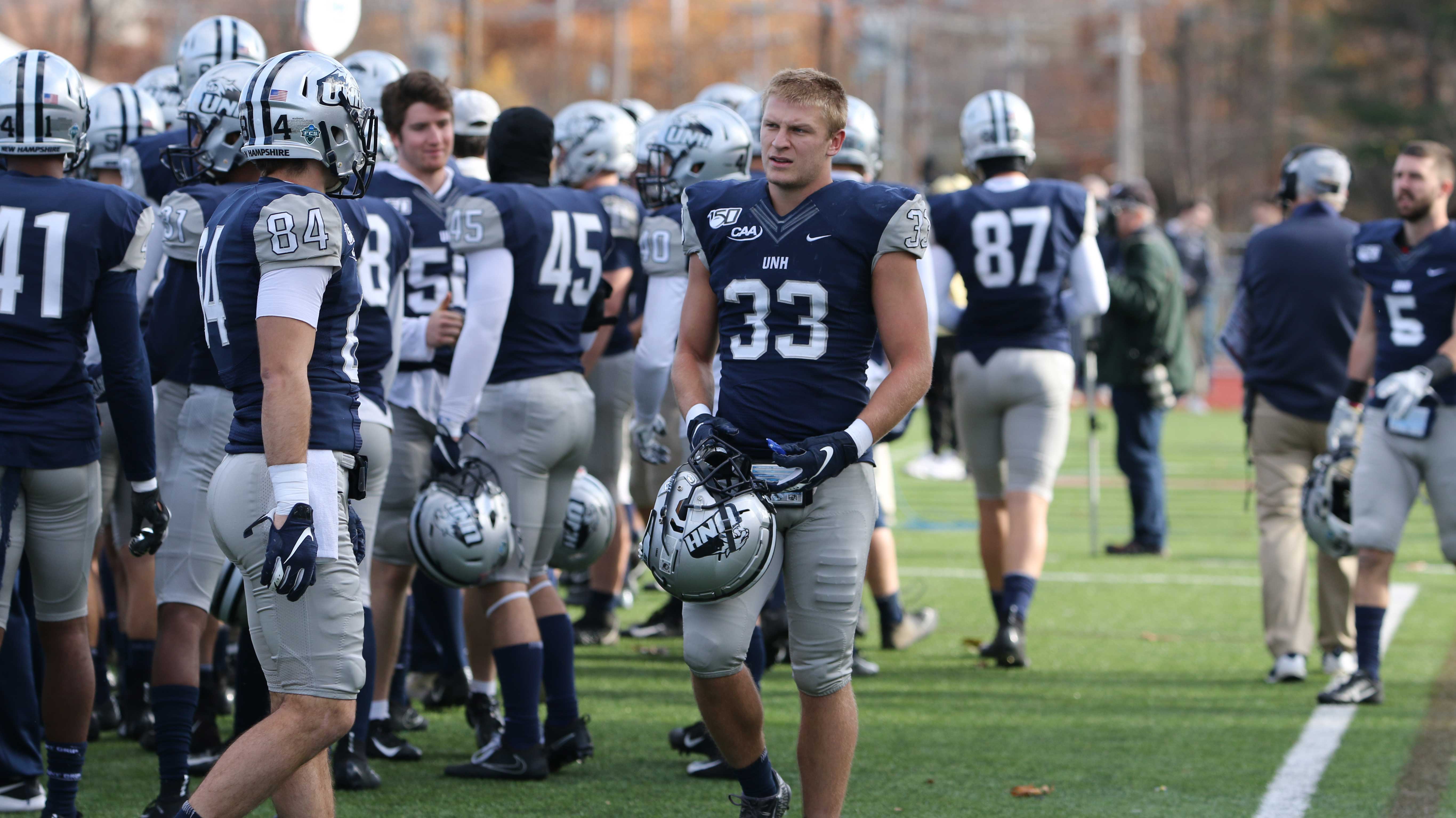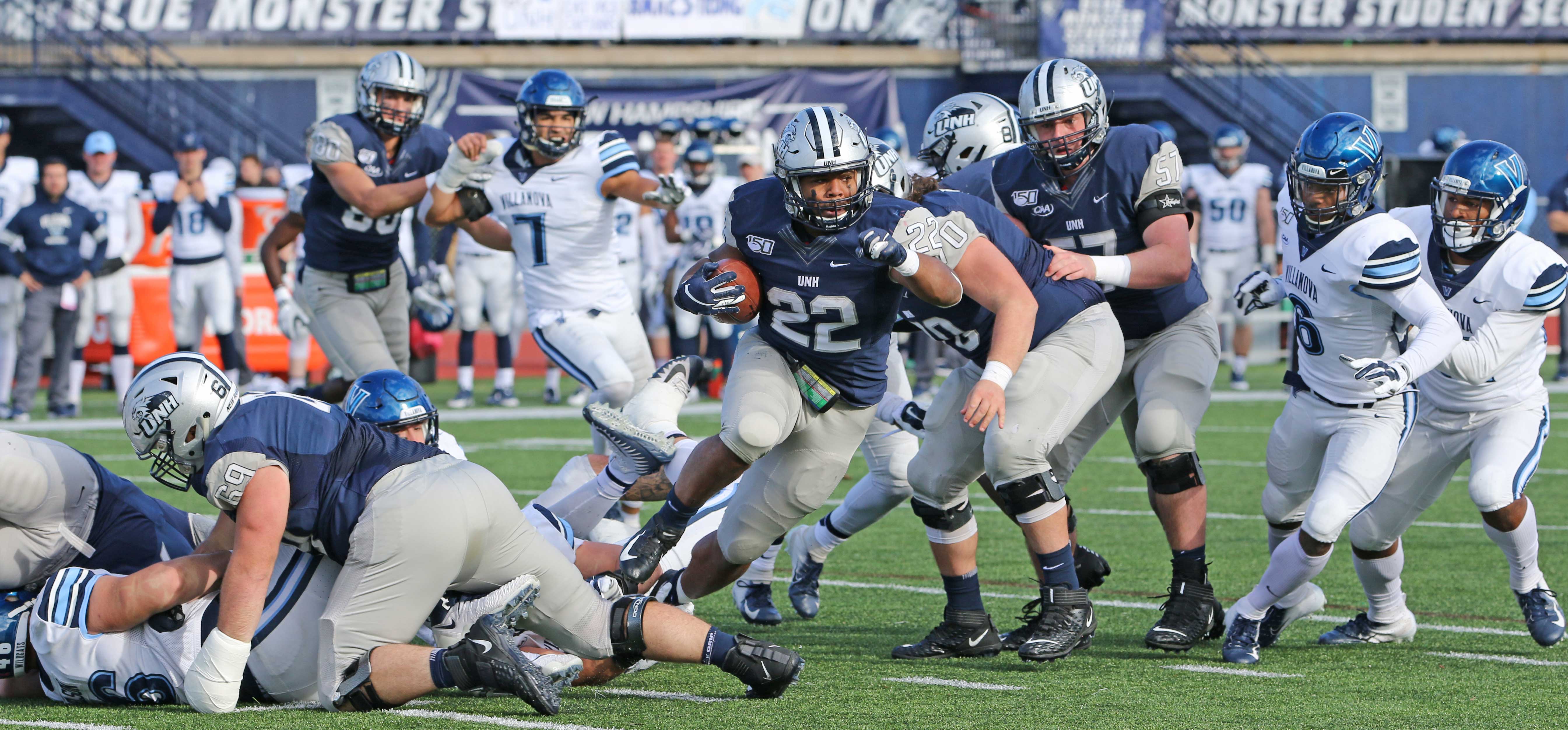 Efficient use by Villanova of timeouts (an issue in an earlier loss) gave the visitors possession in a one-possession game (28-20) at their twenty with 1:49 left and no timeouts. Daniel Smith used time-stopping sidelines passes and a long scramble to reach the New Hampshire thirty-two with twenty seconds left. A pass attempt down the middle, however, was overthrown and defender Evan Horn intercepted and sealed the win for the home team.
