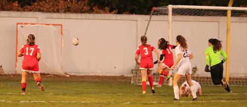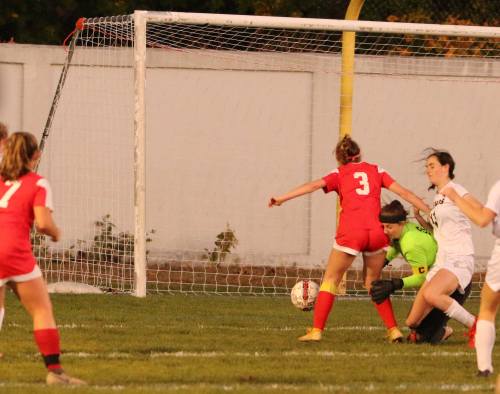 Maura Dorr was carefully marked by Amesbury throughout the game, but she found a chance to possess the ball and face the goal with thirteen minutes left and capitalized.