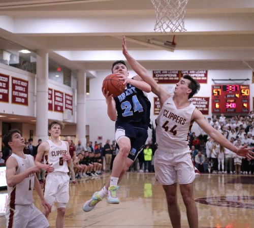 The Clippers recovered after Weston was within one, thanks to a three by Ronan Brown and Ryan Archie layup, assisted by Jack Fehlner. Newburyport was ahead by four (67-63) after three quarters.