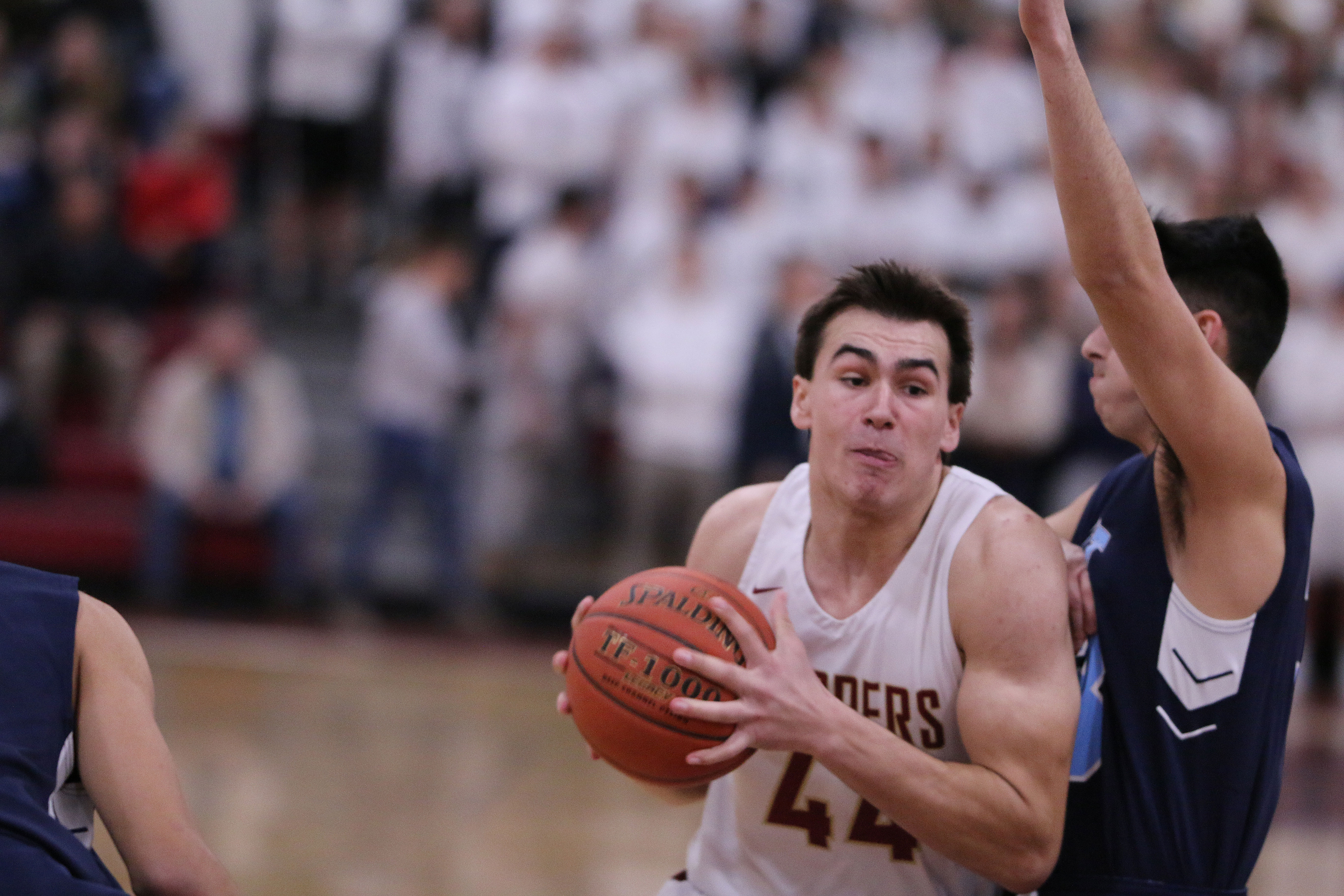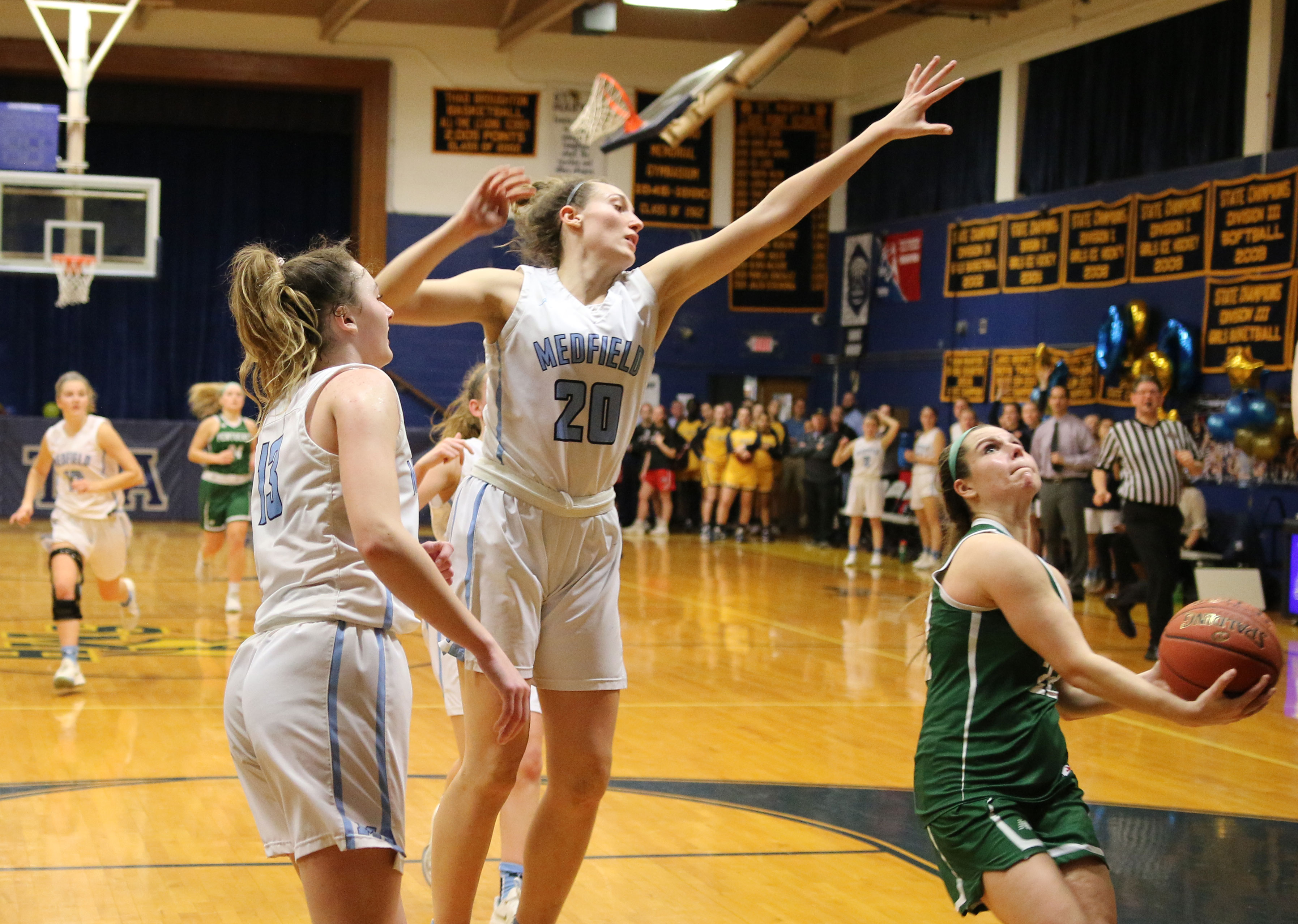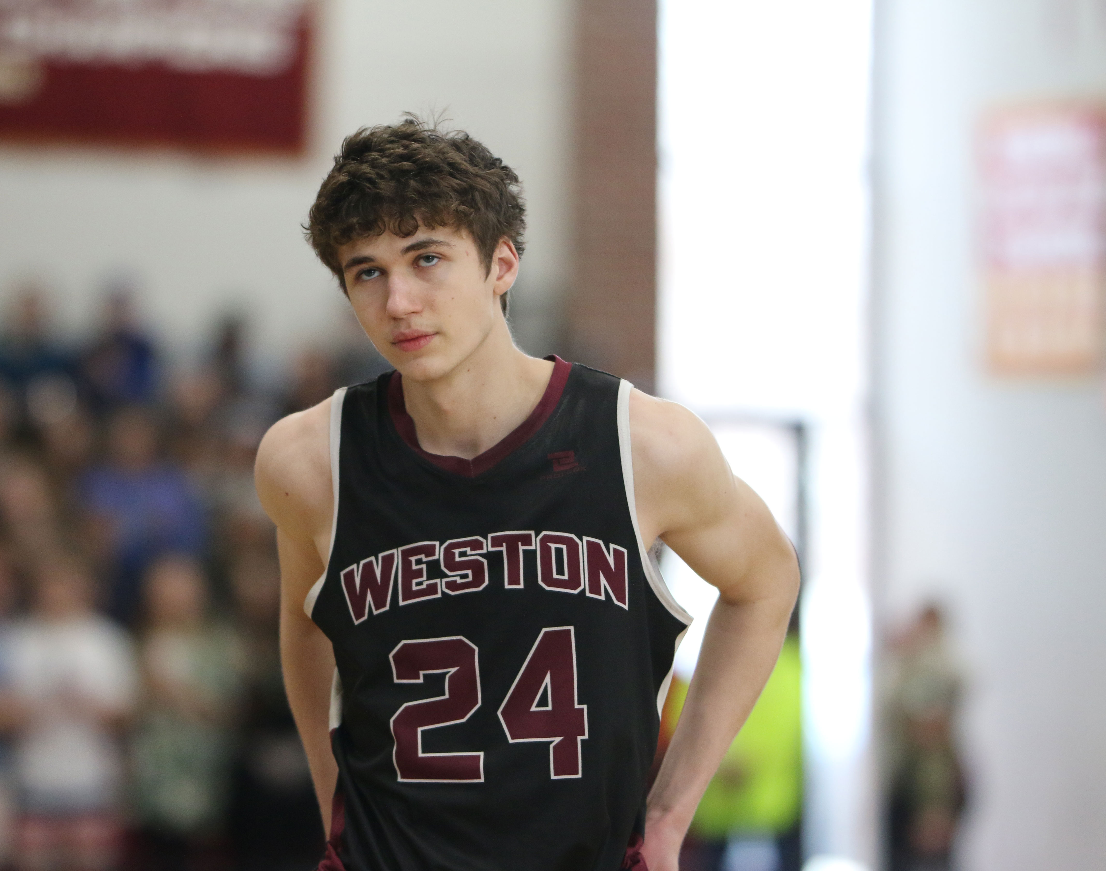Wide open on the left side, in front of the Weston partisans, was junior Will Van Houten (24 points). Will had time (and courage) to take and make the open three with fifteen seconds left. Now down by five (85-80) Newburyport lacked the time and accuracy to recover.