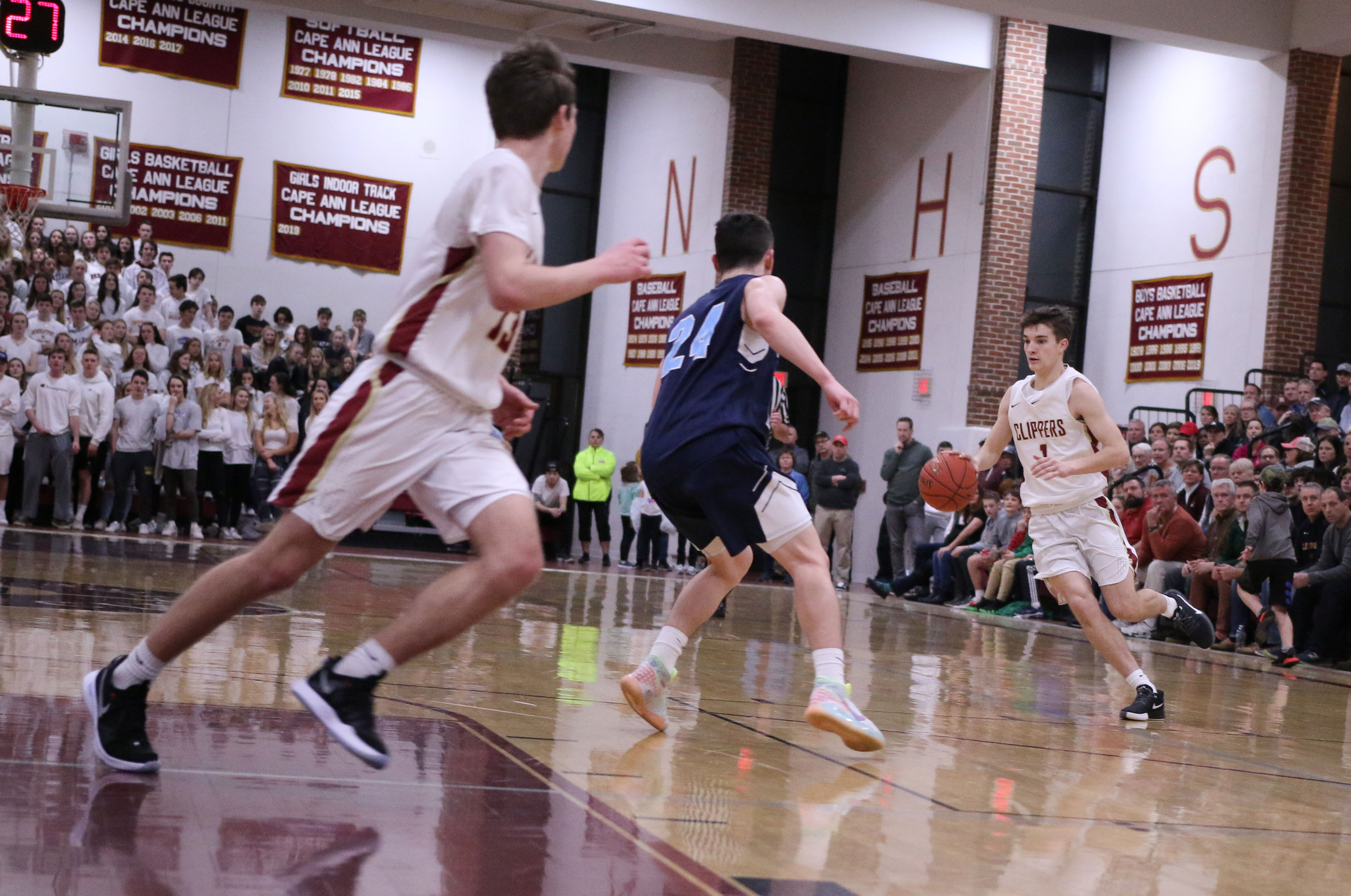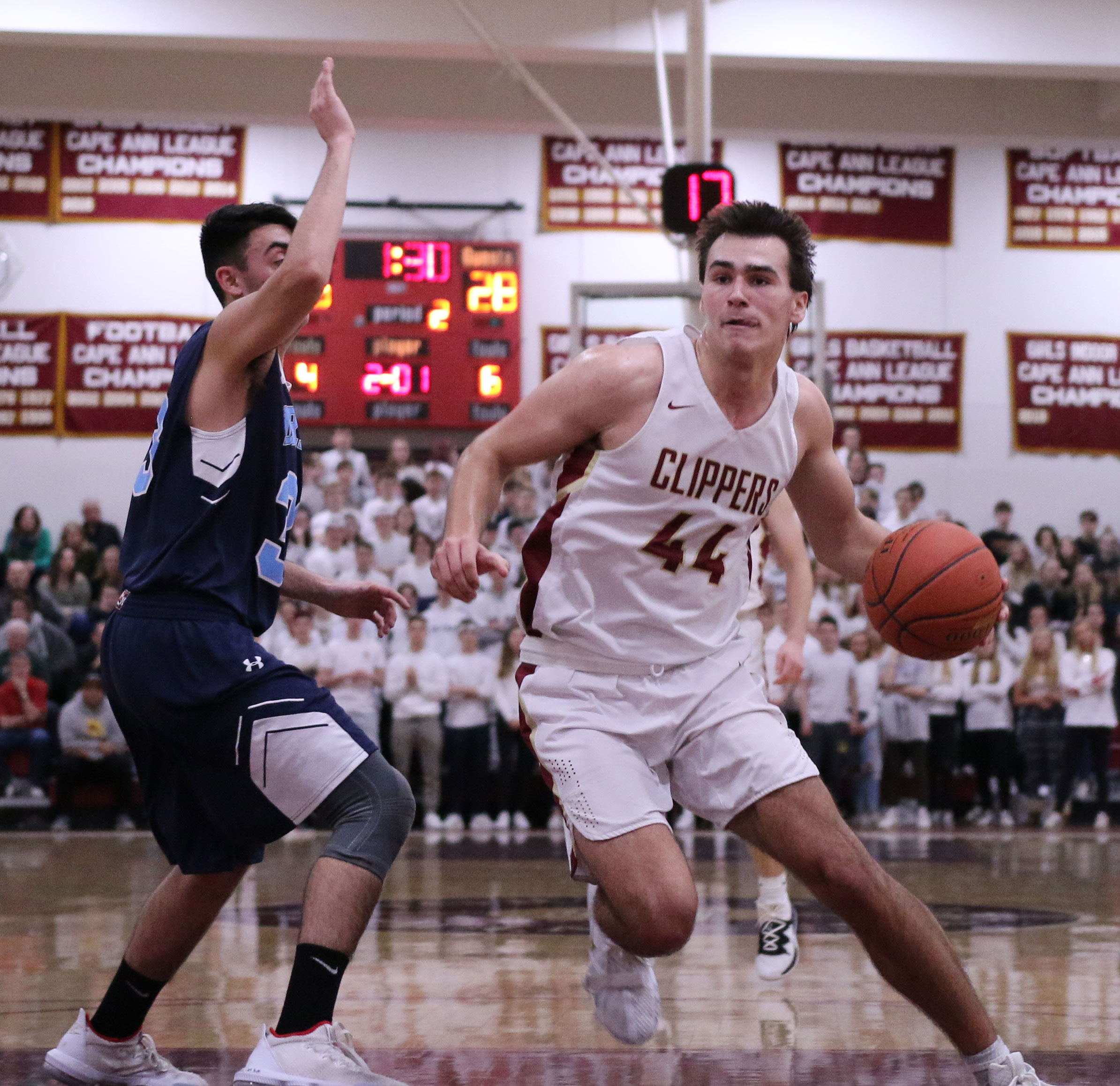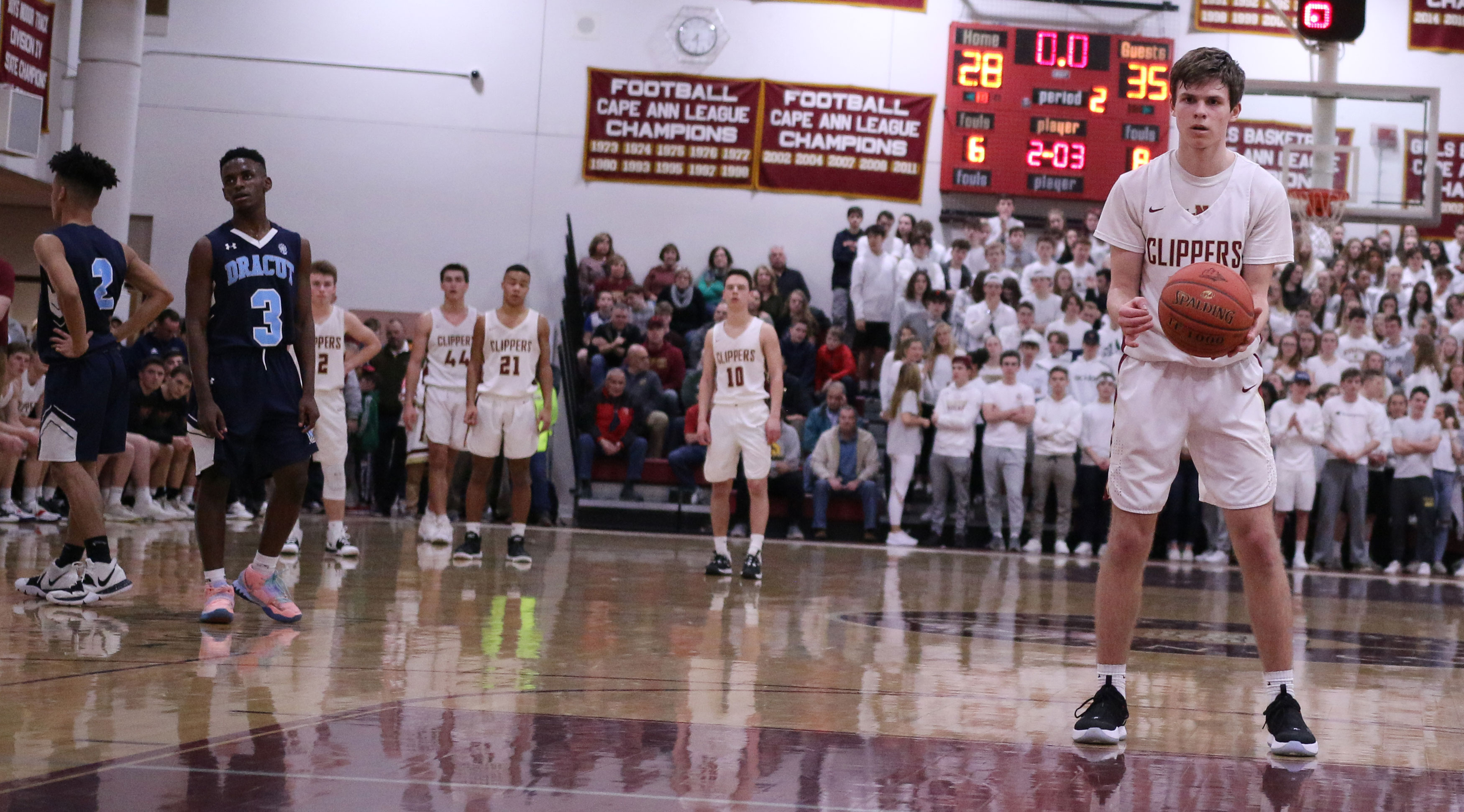 The next two minutes were all Newburyport. The Clippers put a twelve-point, unanswered segment together and came out with a 44-30 lead.