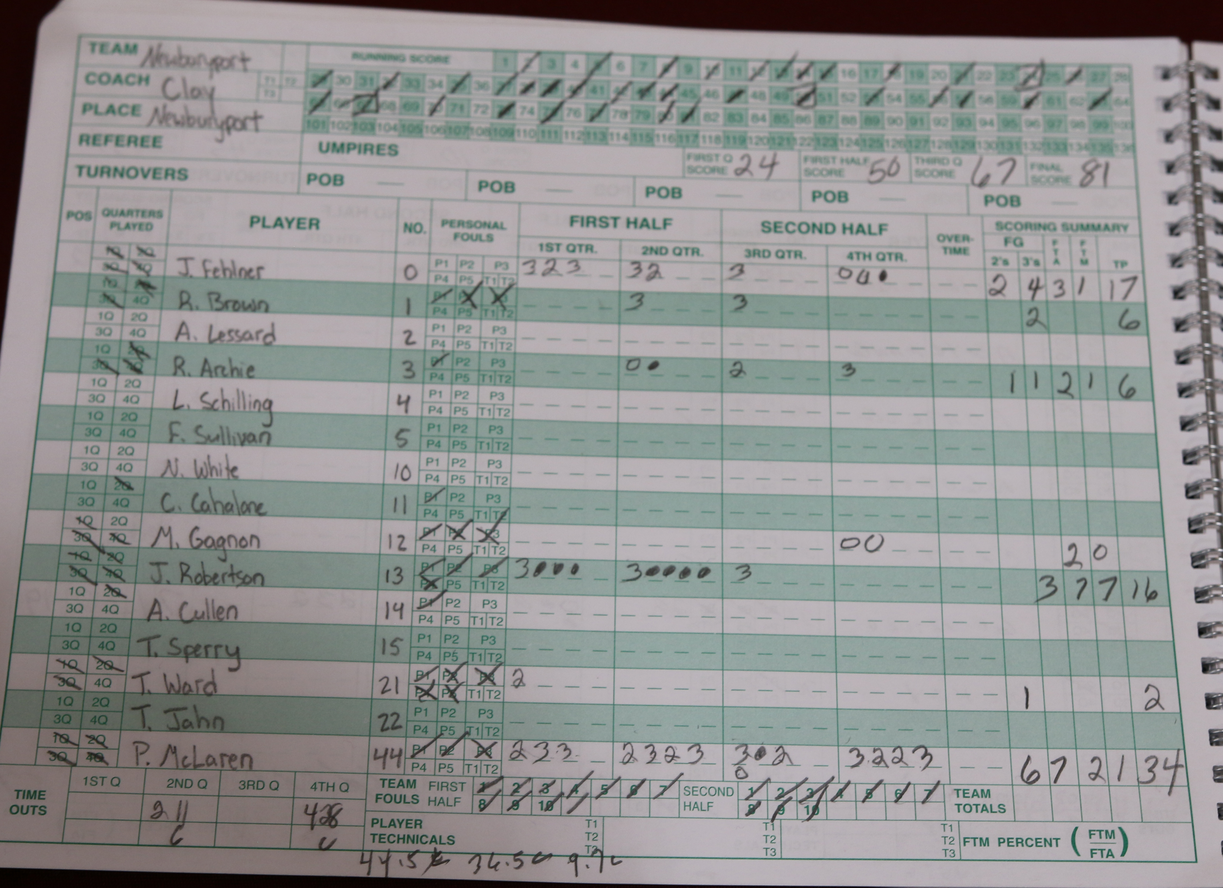 Newburyport had fifty points in the first half while Weston had forty-nine in the second half.