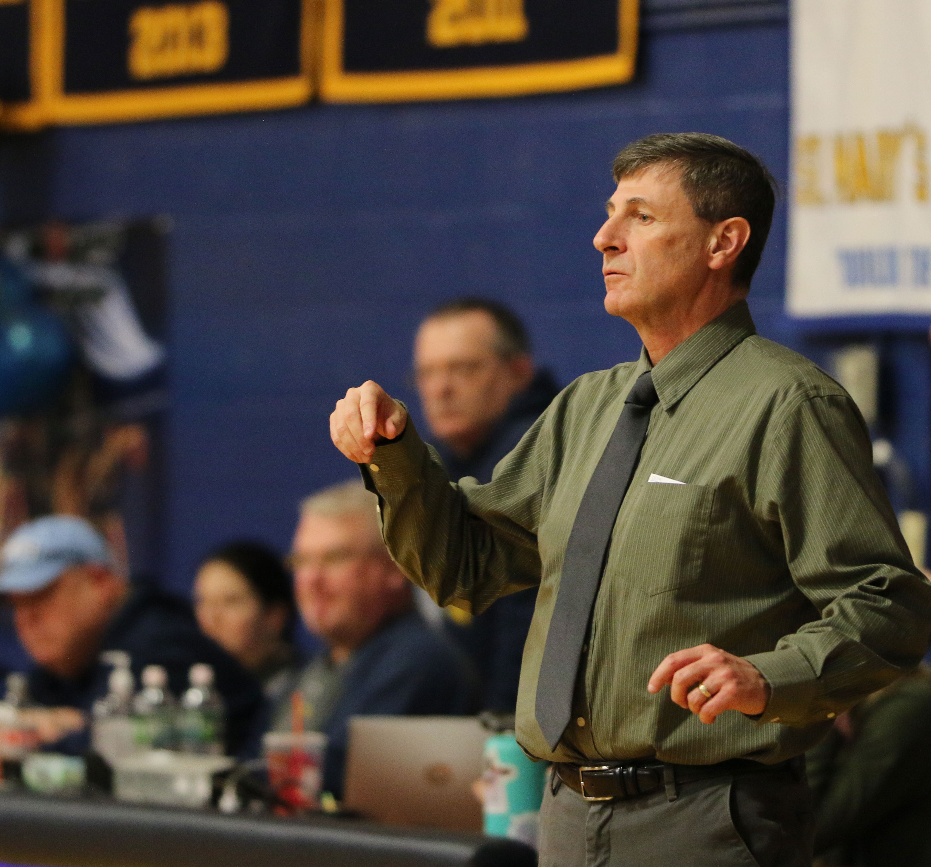 Packed house with some spectators having to stand. Plenty of school officials around to make sure the crowd behaved.