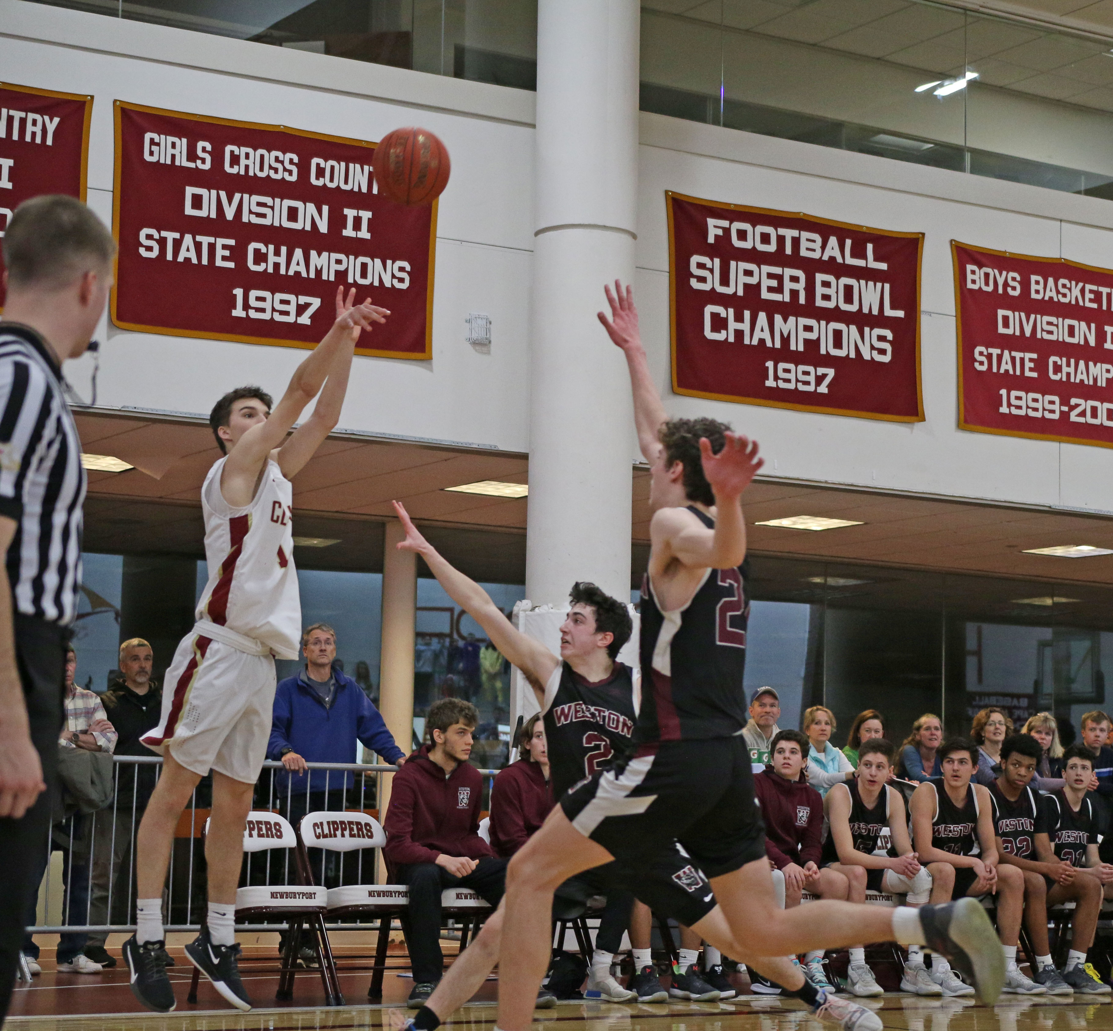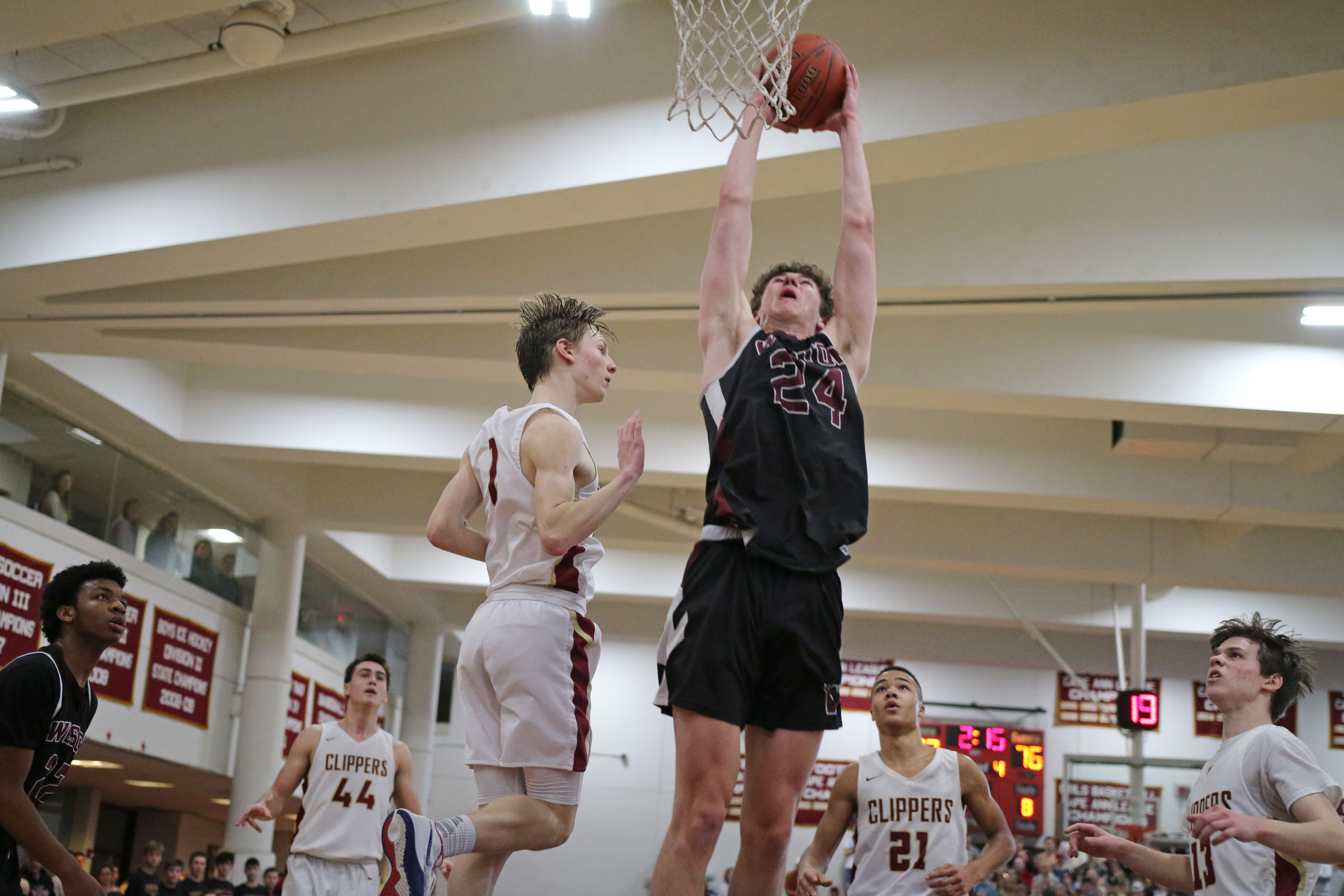 The Clippers recovered after Weston was within one, thanks to a three by Ronan Brown and Ryan Archie layup, assisted by Jack Fehlner. Newburyport was ahead by four (67-63) after three quarters.